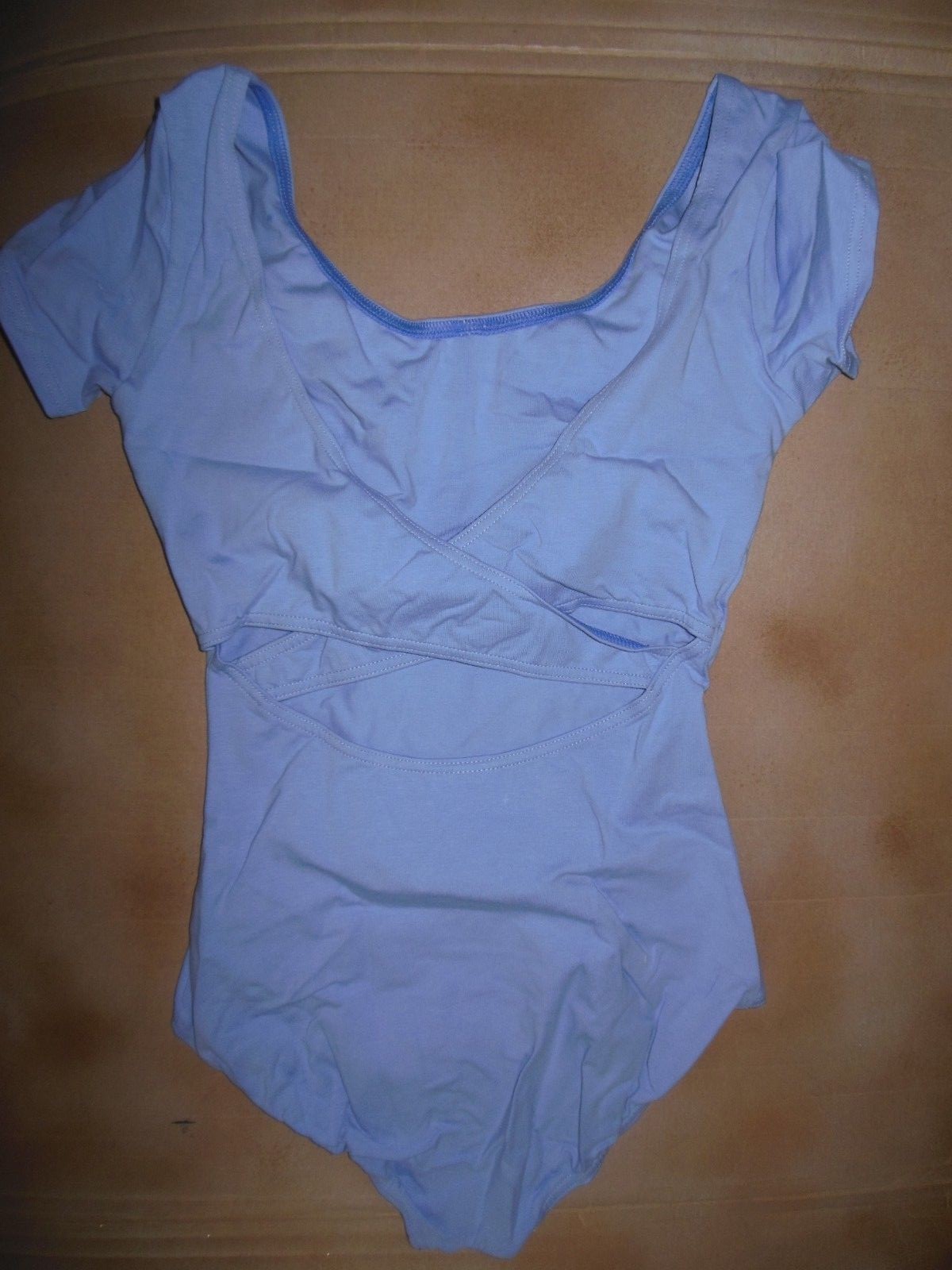 как выглядит CAPEZIO copen BLUE Short sleeve crisscross back leotard CC868 frontlined фото