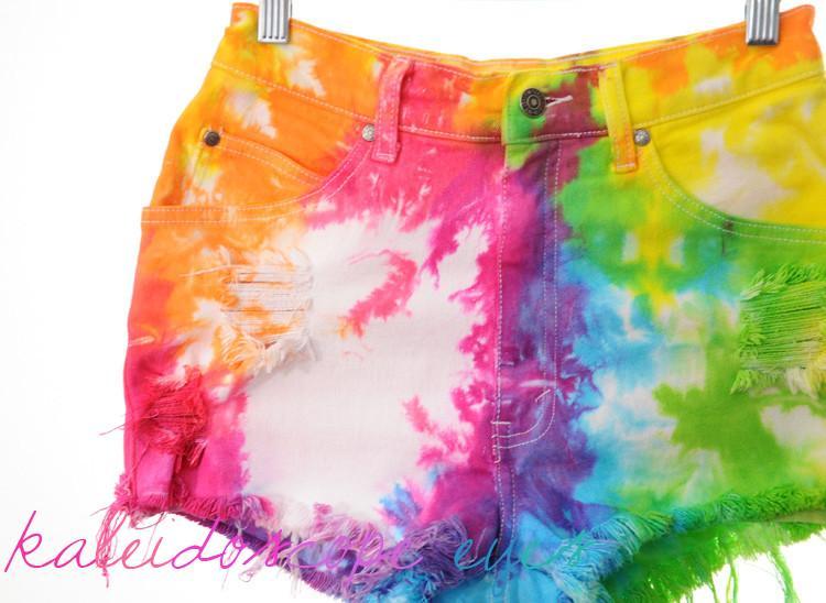 VTG 80s Levis High Waist RAINBOW dyed tie dye Cut Off Destroyed Shorts XS