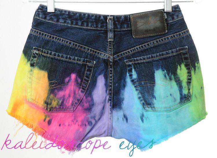 как выглядит Vtg 80s Mid Rise Ombre Dip Dye tie Dyed RAINBOW Destroyed Cut Off Shorts S фото
