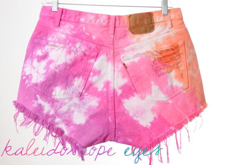 Vtg Levi 501 High Waist Coloful Tie Dye Dyed Destroyed Frayed Cut Off Shorts XXL