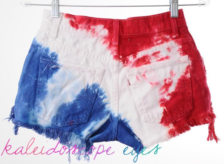 Vtg LEVIS Red White Blue AMERICAN FLAG Tie Dye Dyed Cut Off STUDDED Shorts XXS
