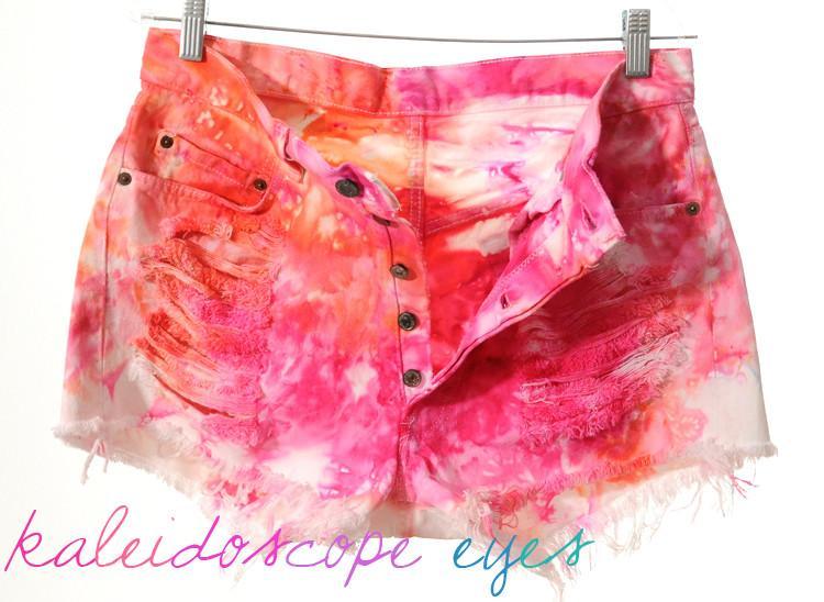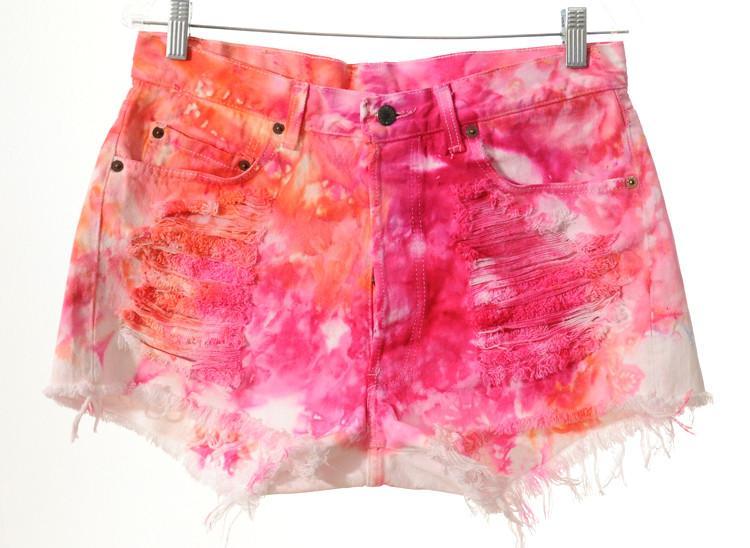 Vtg LEVIS 501 High Waist Colorful Pink Tie Dye Destroyed Cut Off Shorts XL