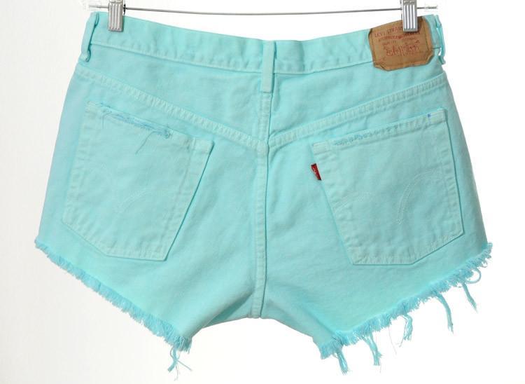 как выглядит Vtg LEVIS High Waist Pastel Turquoise Dyed STUDDED Destroyed Cut Off Shorts XL фото