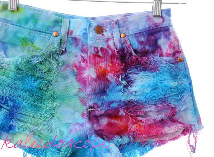 как выглядит Vtg Wrangler High Waist Colorful Marbled Tie Dyed Destroyed Cut Off Shorts XS S фото