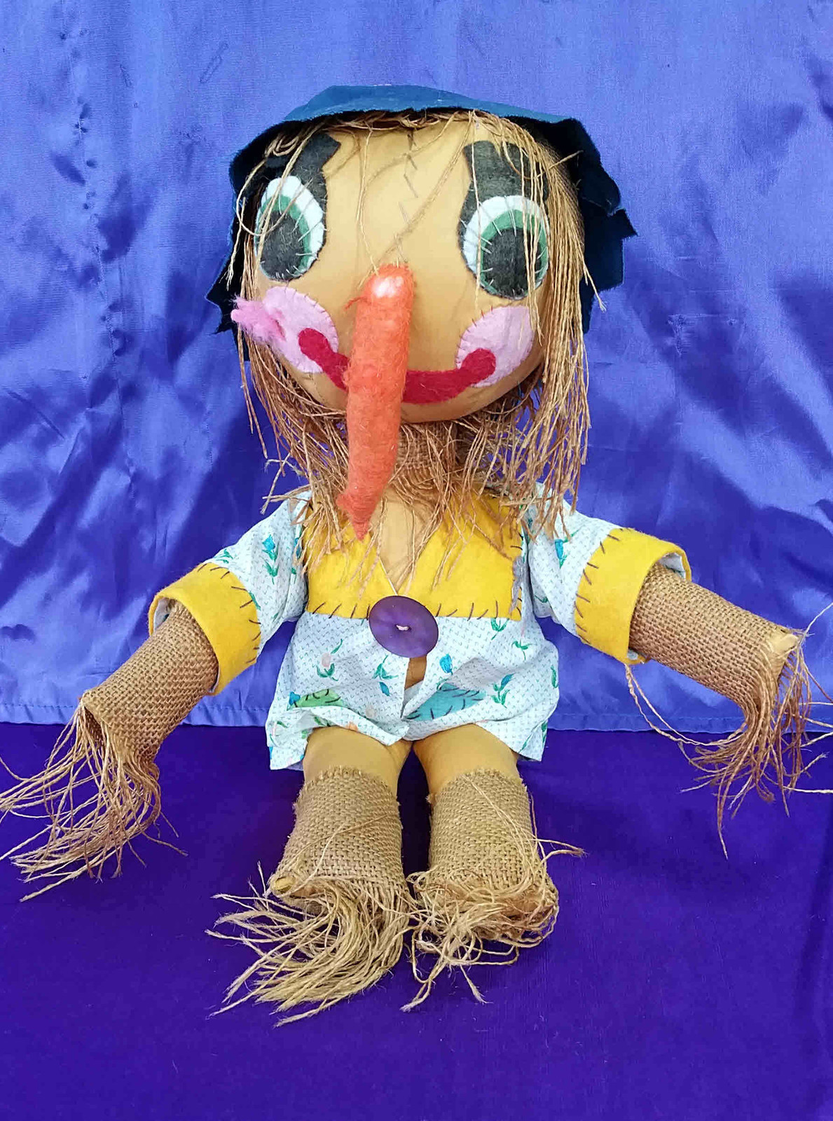 Halloween Scarecrow Decor Toy Doll from Bucilla Needlecraft Kit 2689 1960s