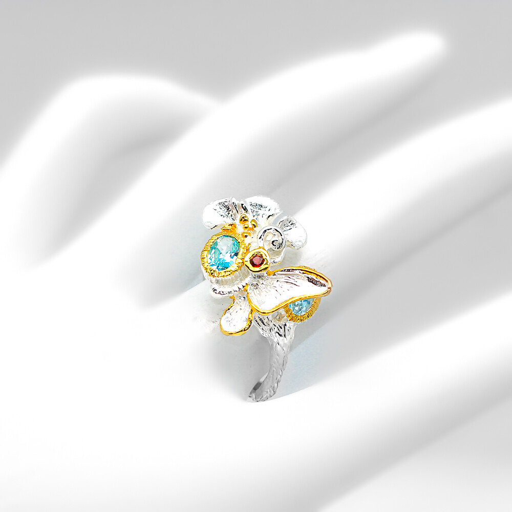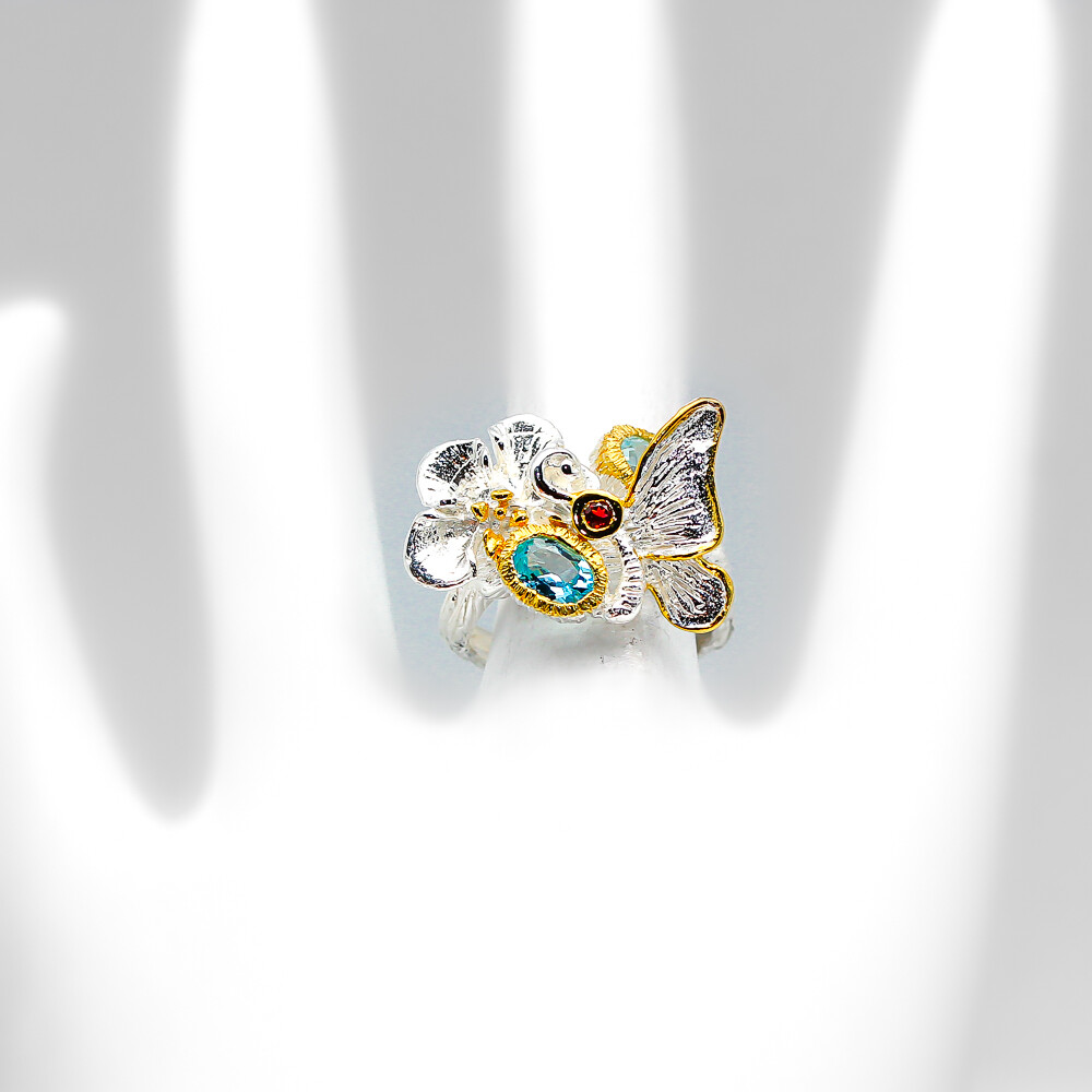 как выглядит Handmade jewelry Gift Natural Blue Topaz Silver Ring 925 Sterling / RVS67 фото