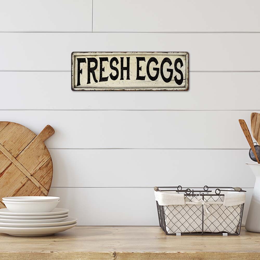 Fresh Eggs Chic Vintage Look Farm House Wall D cor Metal Sign 106180028059