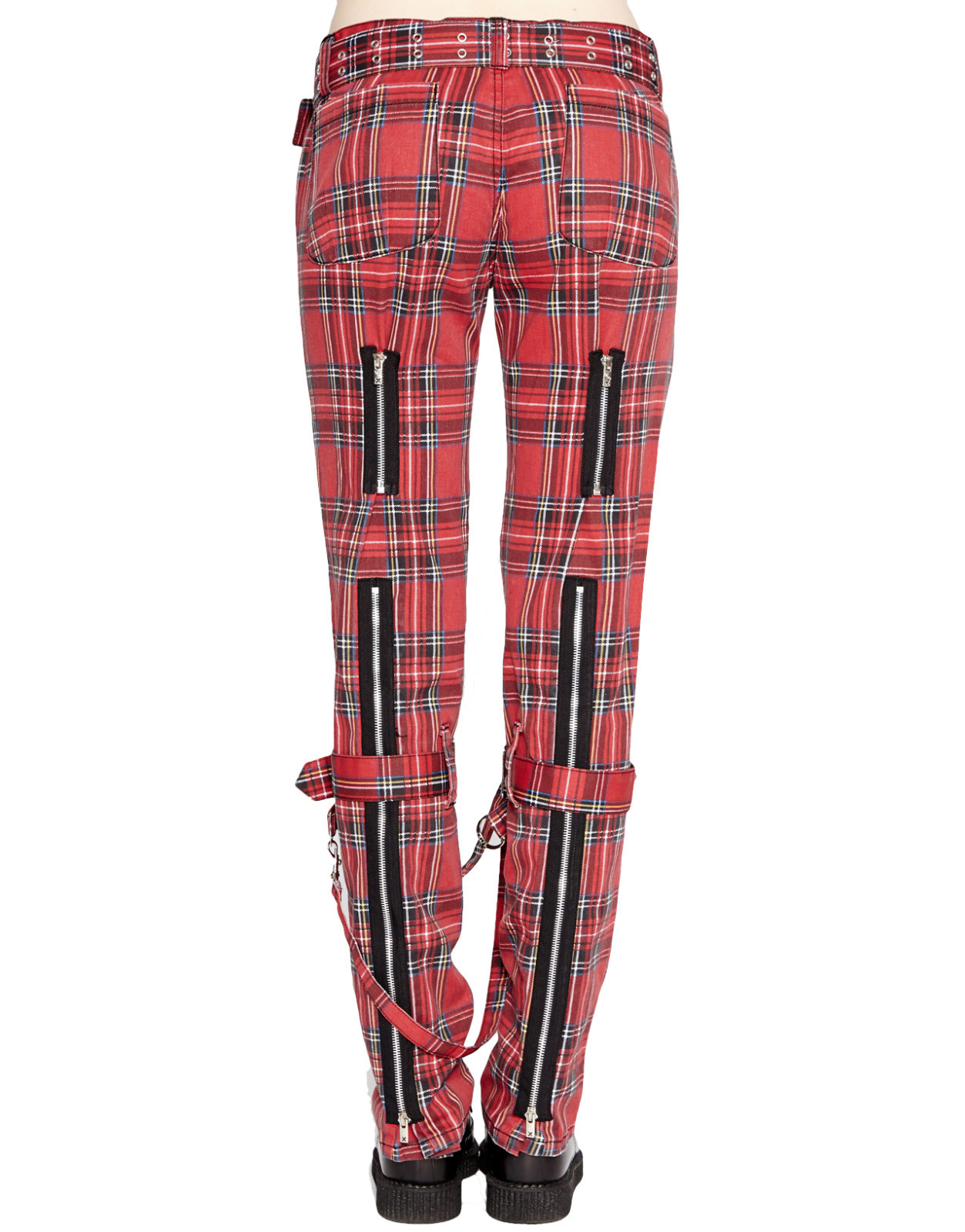 TRIPP GOTHIC PUNK EMO BONDAGE RED PLAID STRAPS ZIPPER ROCK STAR PANTS IS267P