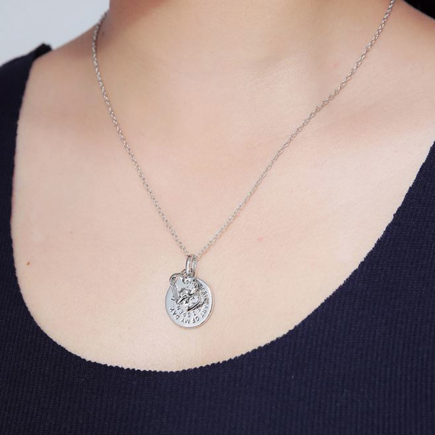 как выглядит Engraved Necklace 14k White Gold Plated Double Heart Pendant Jewelry for Women фото