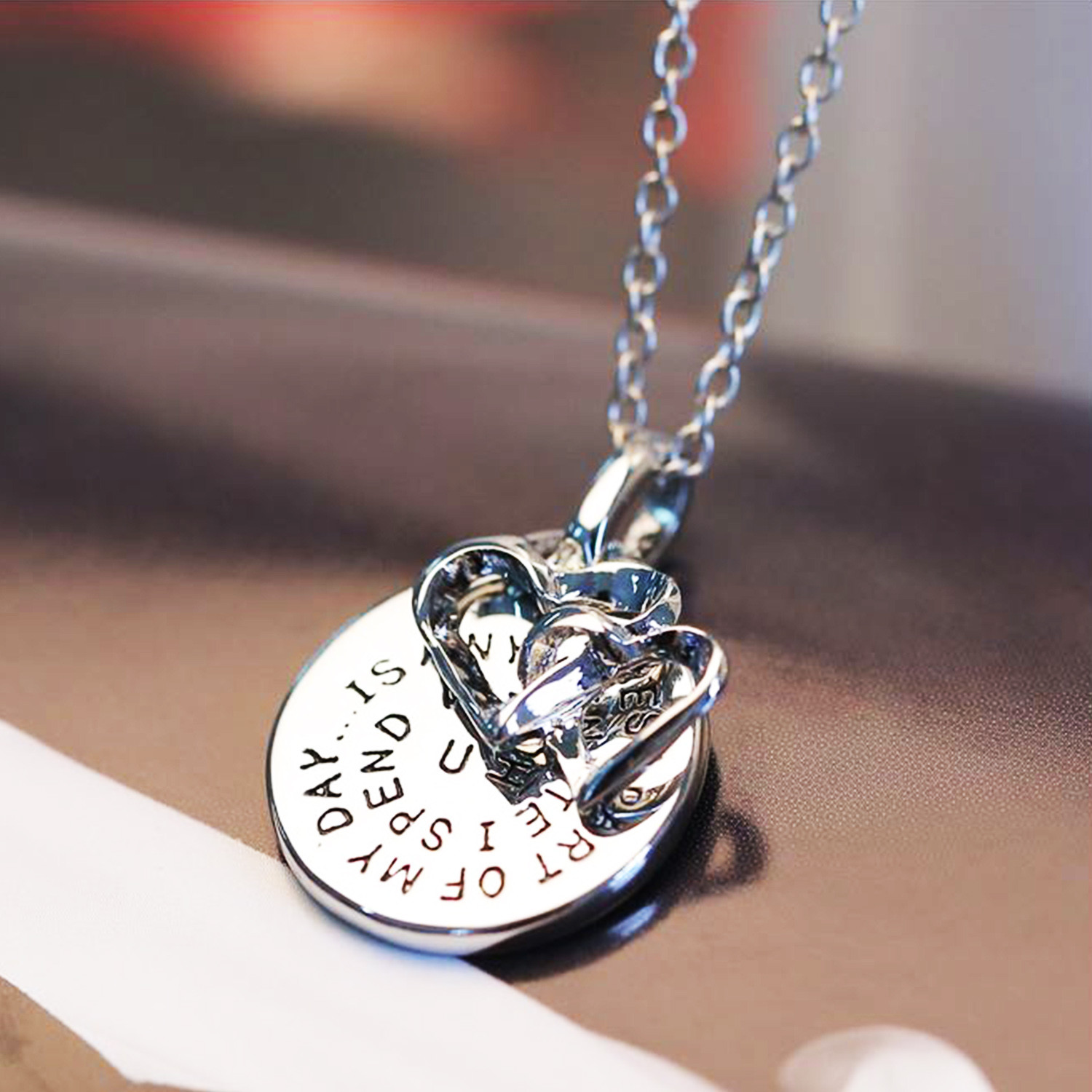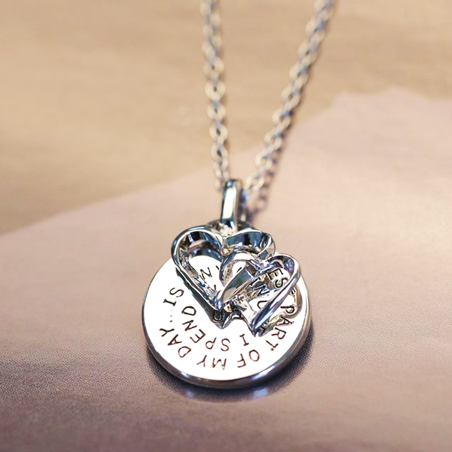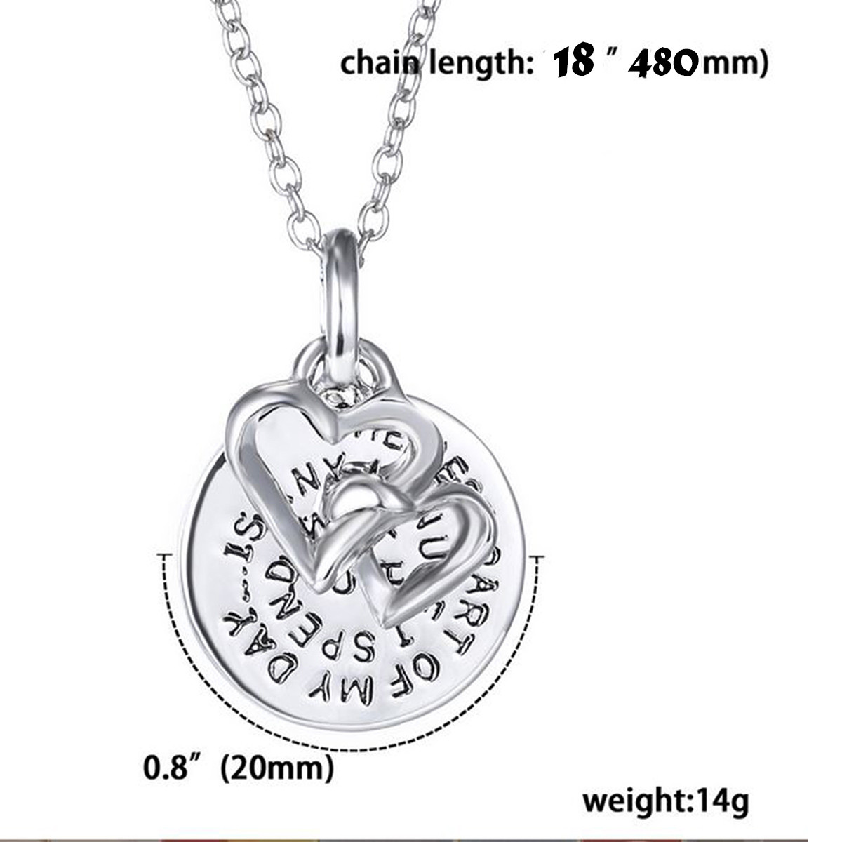 Engraved Necklace 14k White Gold Plated Double Heart Pendant Jewelry for Women