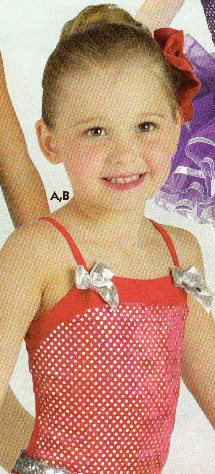 как выглядит Dance costume leotard w/ Matching tutu Girls small 6C Red silver dot red foil фото