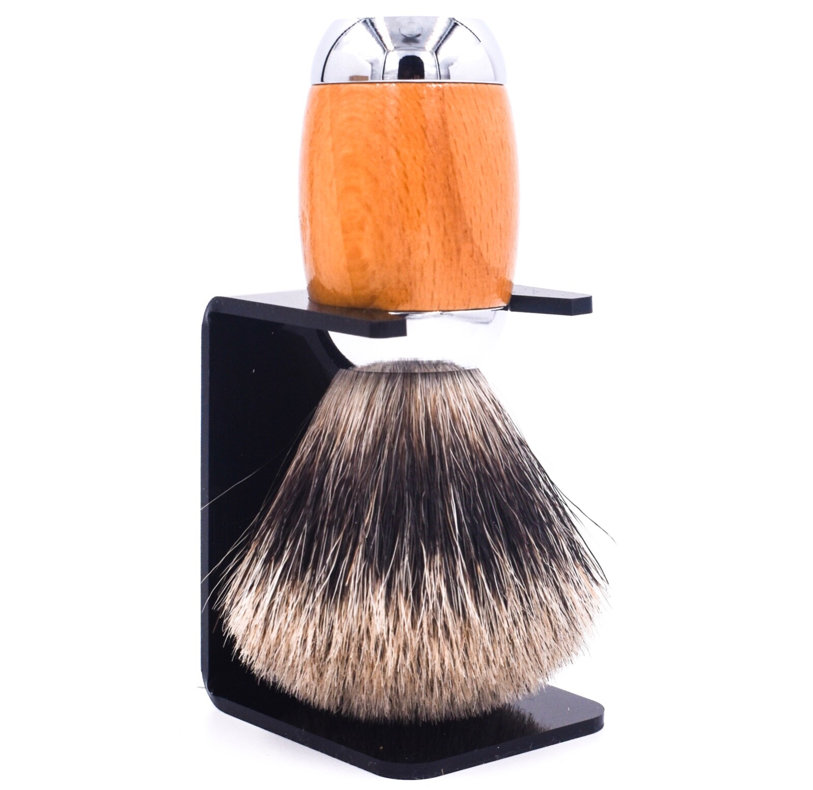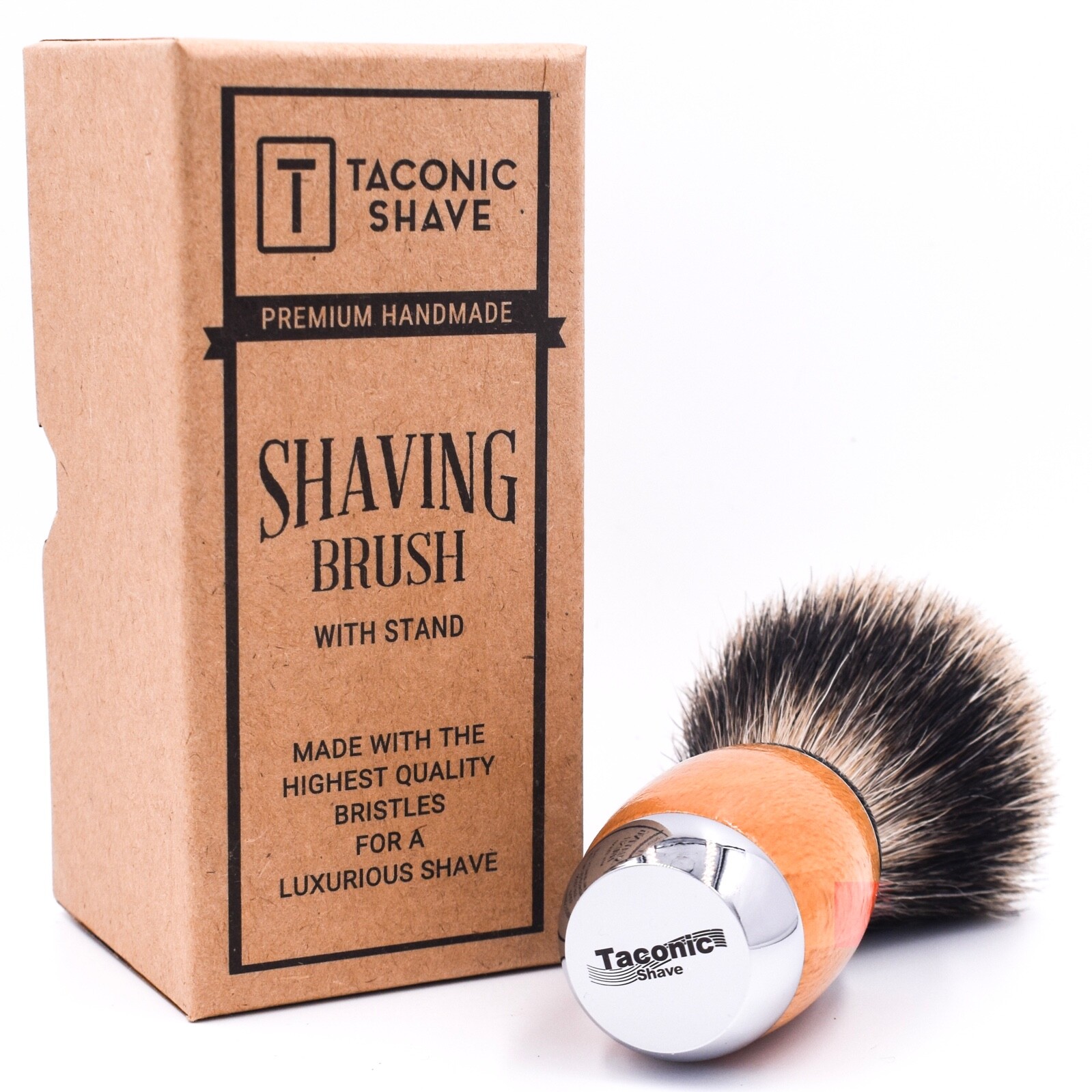 Taconic Shave Wood Chrome Handle Handmade Pure Badger Shaving Brush Stand