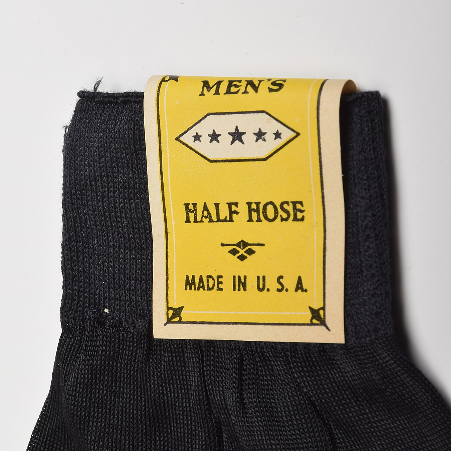1950s Deadstock Black Dress Socks VTG Hose Silky Feel Nylon Cotton Rib Knit Top