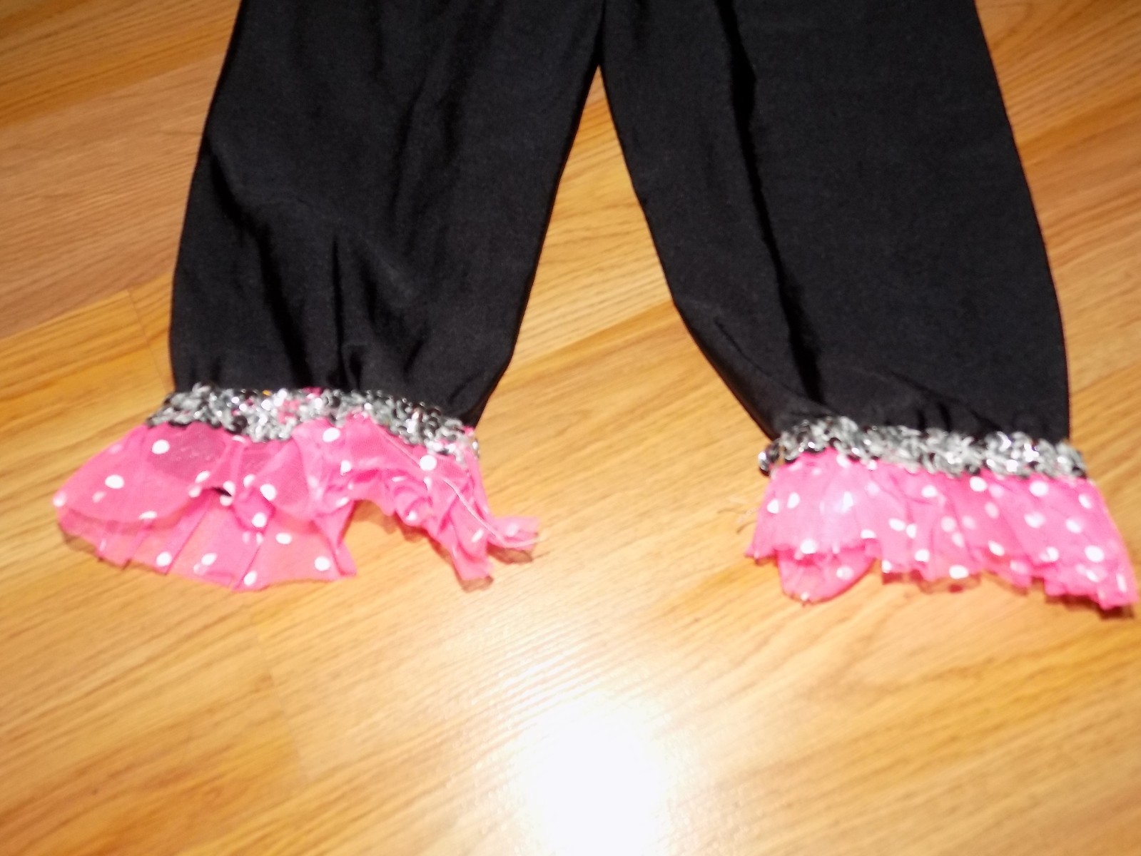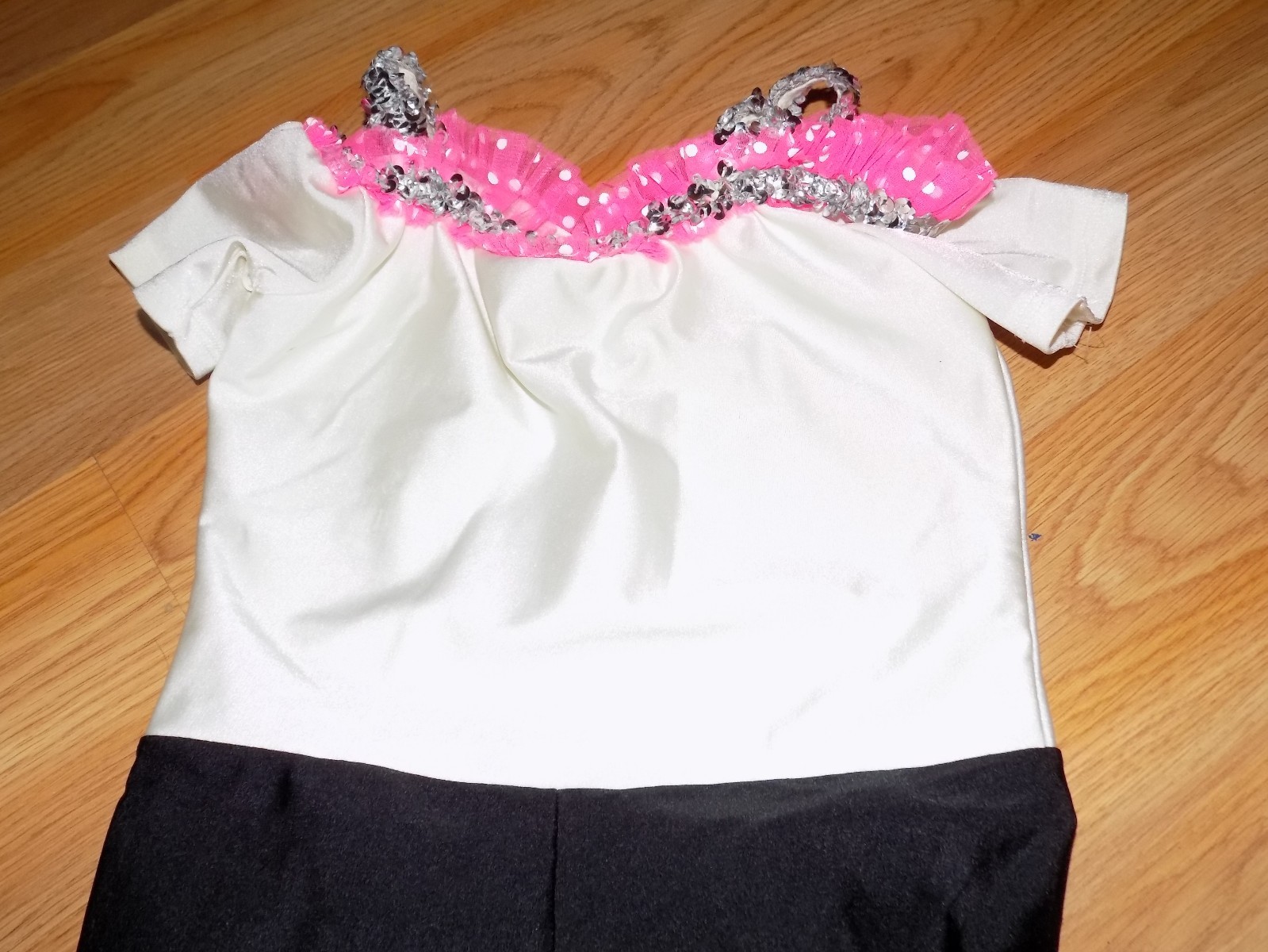 как выглядит Child Size Medium 7-8 Dance Costume Cropped Pantsuit Black White Pink Unitard фото