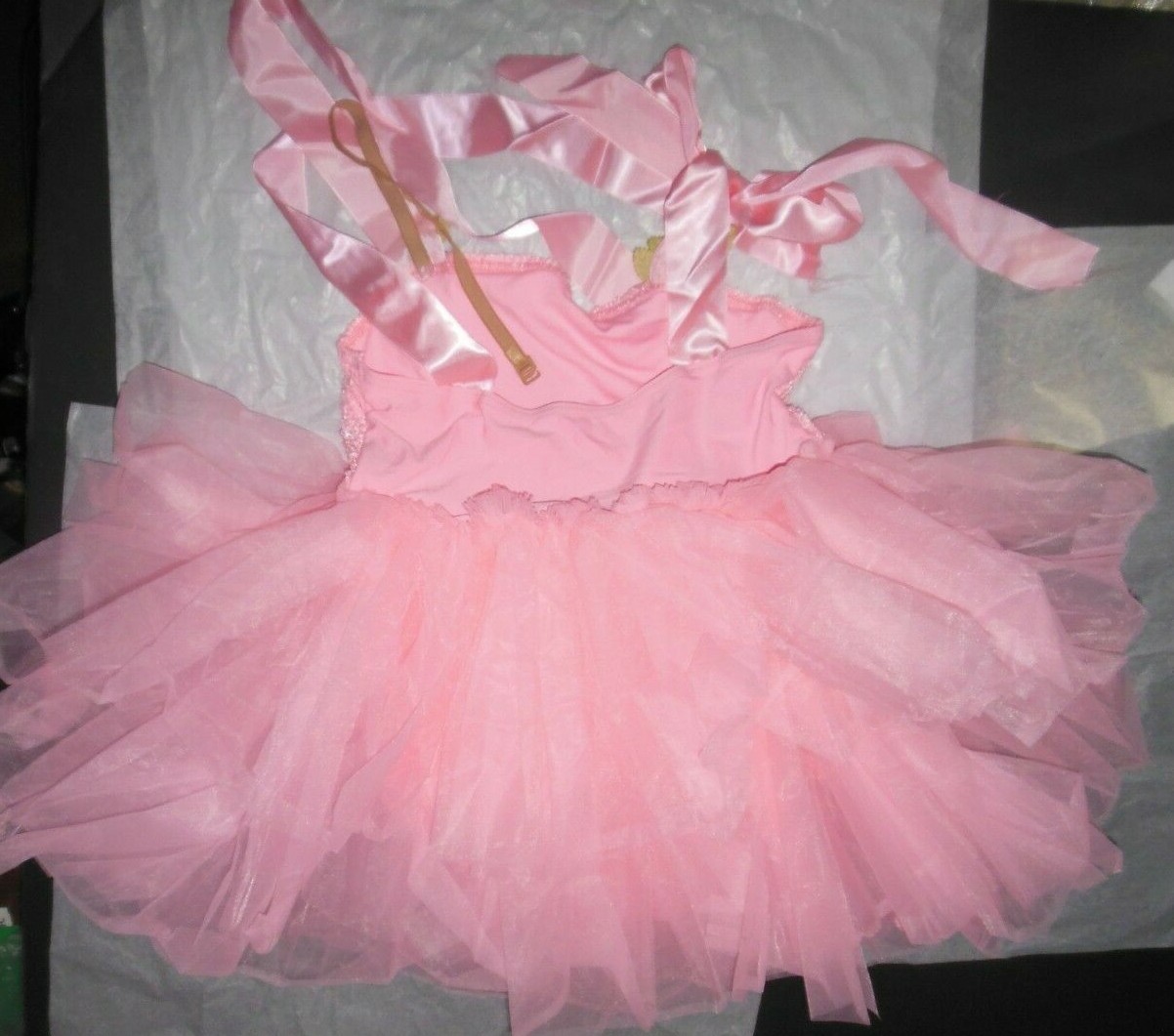 Tap Dance Costume Pink Waffle Fabric Organdy ruffled skirt floral detail XLchild