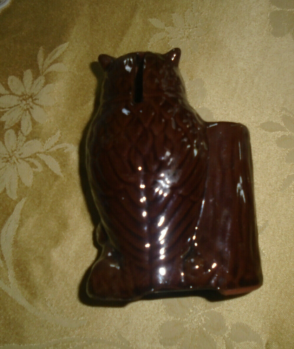 • Vintage Ceramic Coin Bank Owl With Rubber Stopper Made In Japan 5 by 3 inches