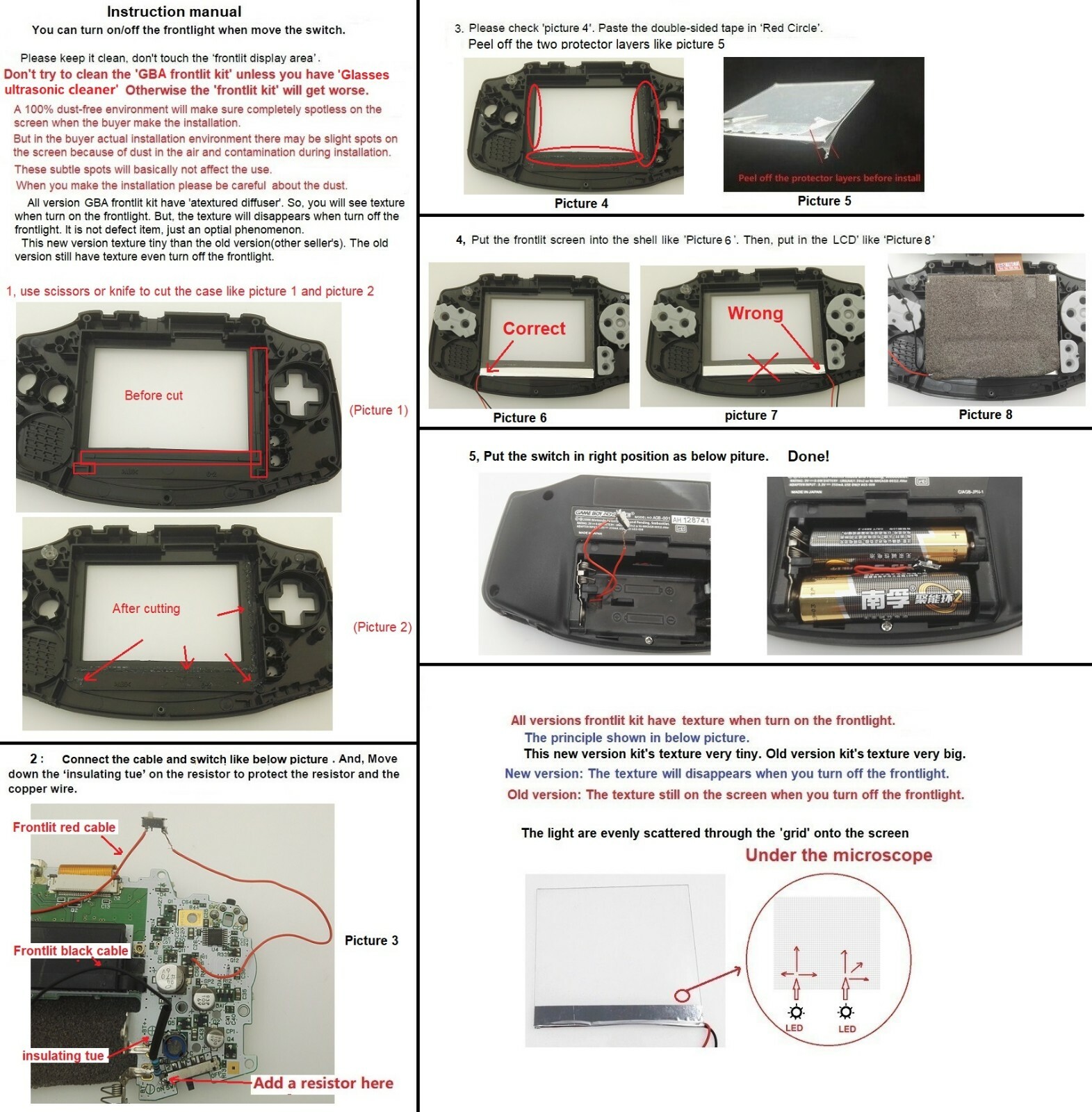 New Version Frontlit For GBA Game Boy Advance Frontlight Front Light Kit