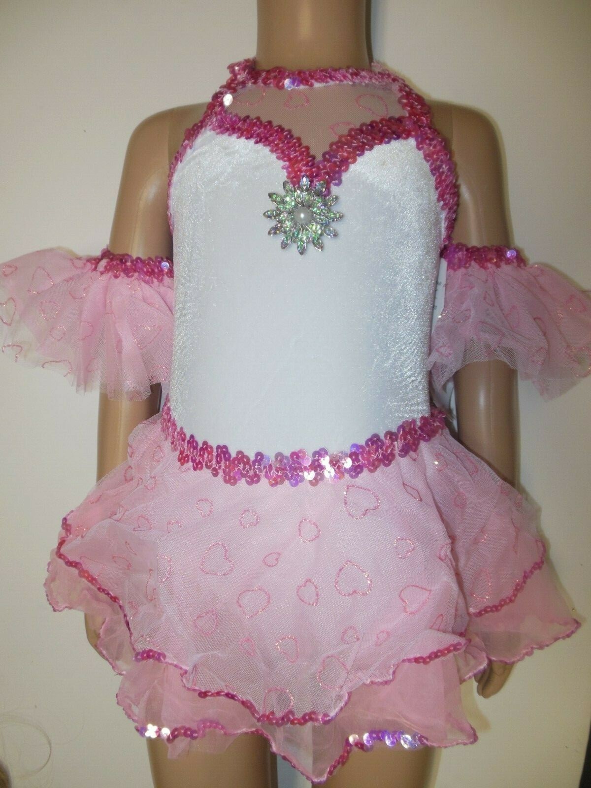 White Velvet spandex leotard sequin trim and skirt and sleeves small child sheer