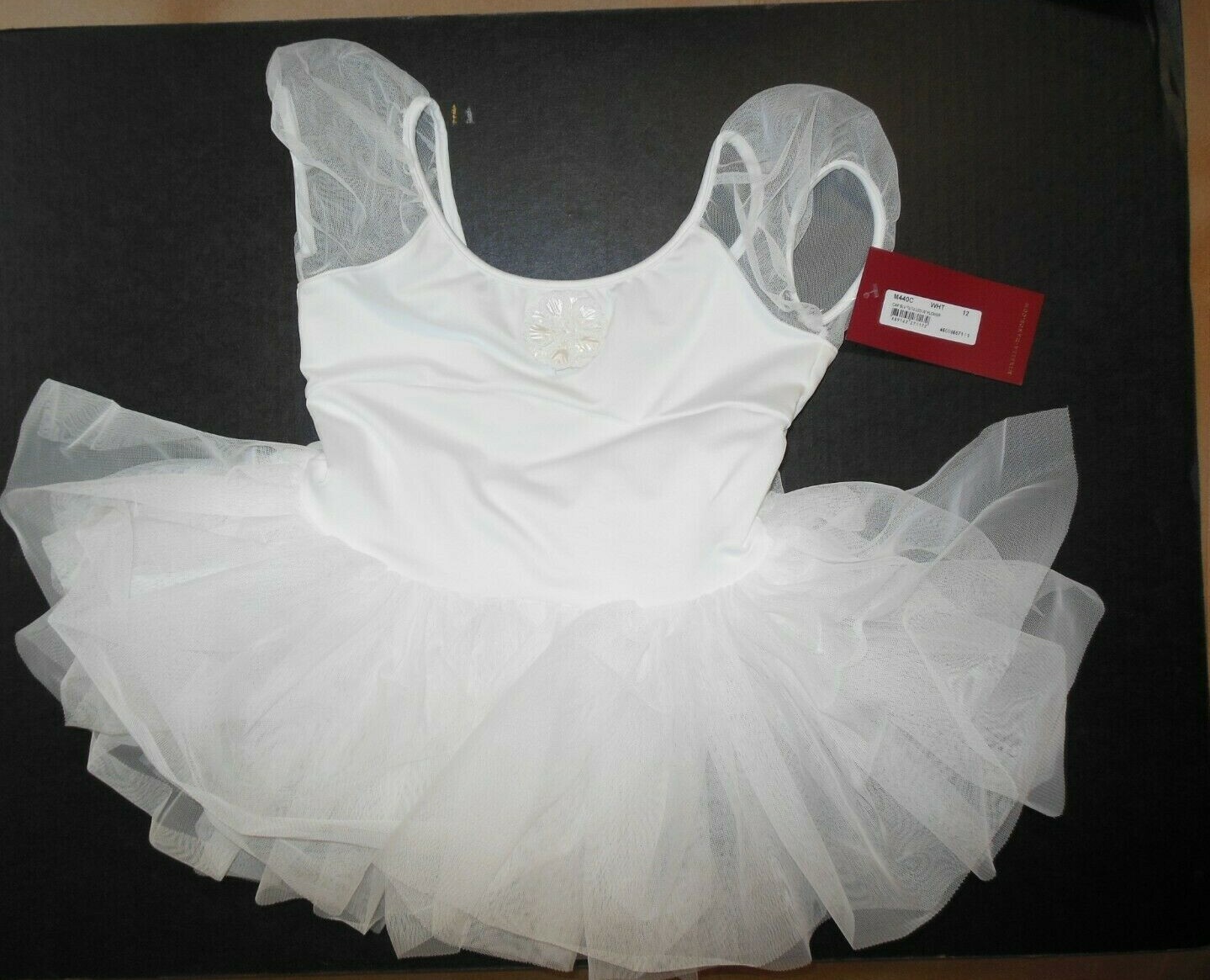 Mirella M440C girls size 12 White tutu ballet dress Cap sleeve tulle skirt lined