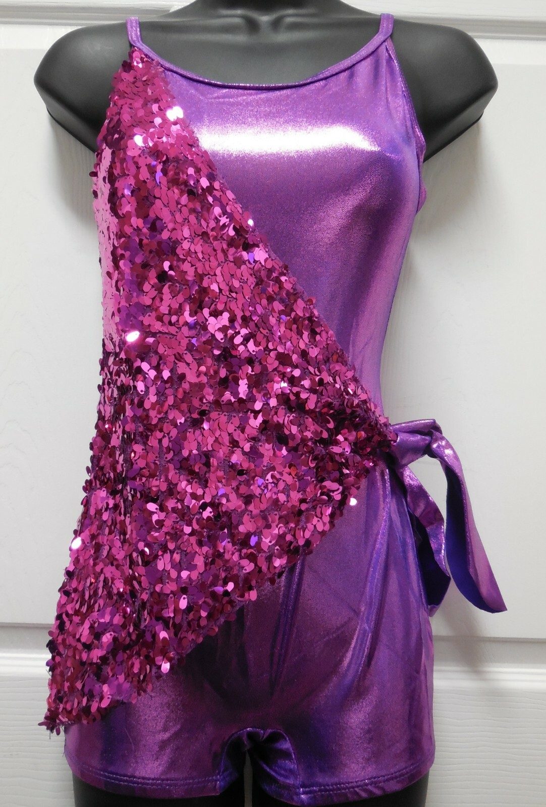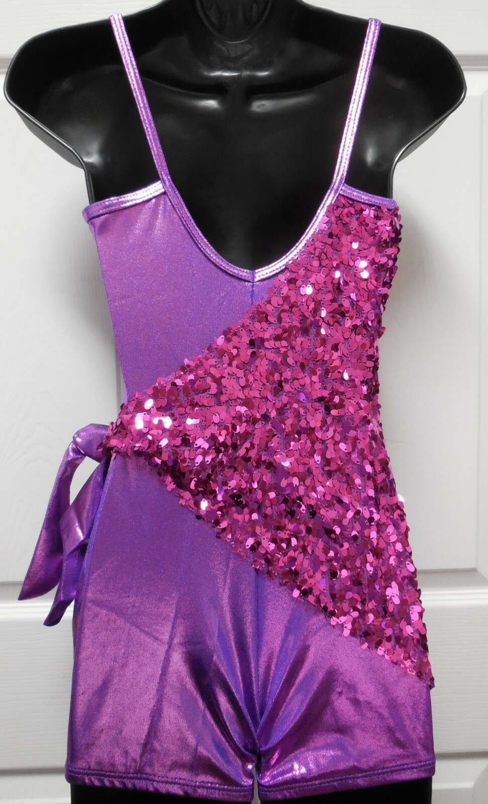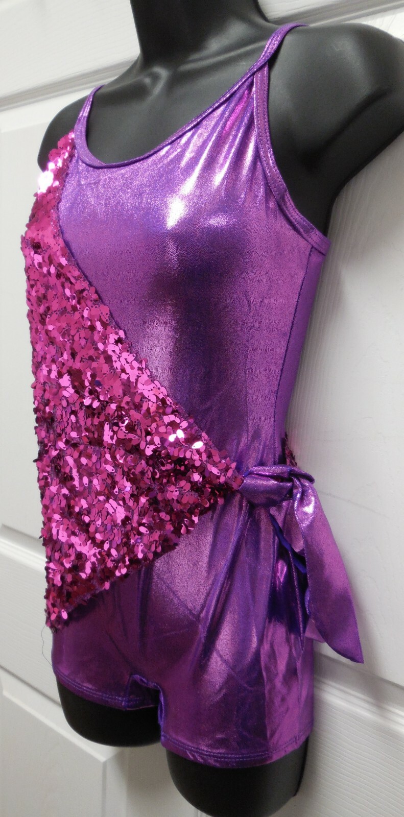 Purple Sequin Foil Spandx Shorty Unitard Dance Costume Ad/Ch Sz ovr 20 available