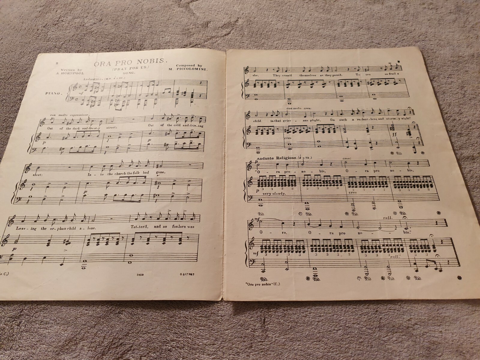 ORA PRO NOBIS - A HORSPOOL, M PICCOLOMINI - SHEET MUSIC