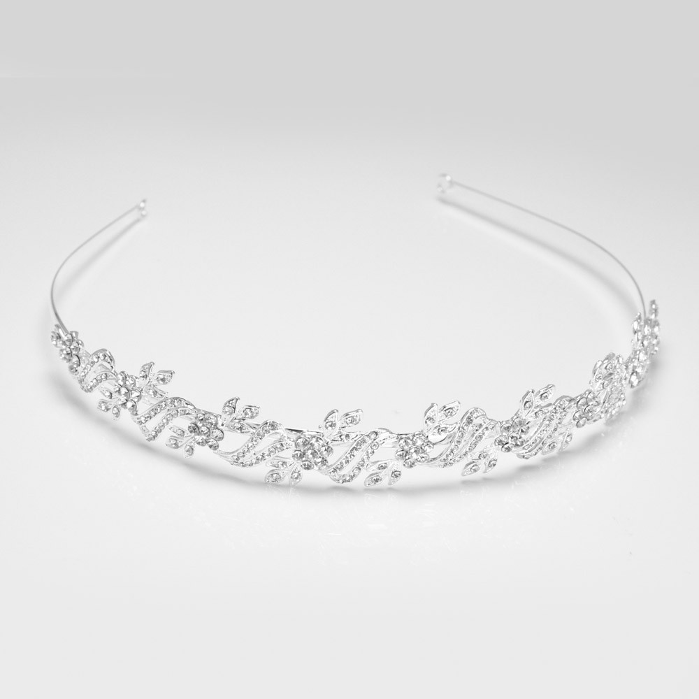Bridal Tiara Headband Silver Swarovski Rhinestone Elements in Floral Design