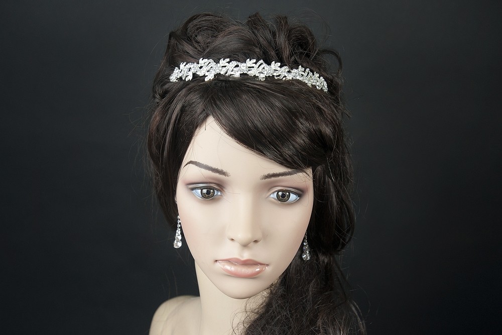 как выглядит Bridal Tiara Headband Silver Swarovski Rhinestone Elements in Floral Design фото
