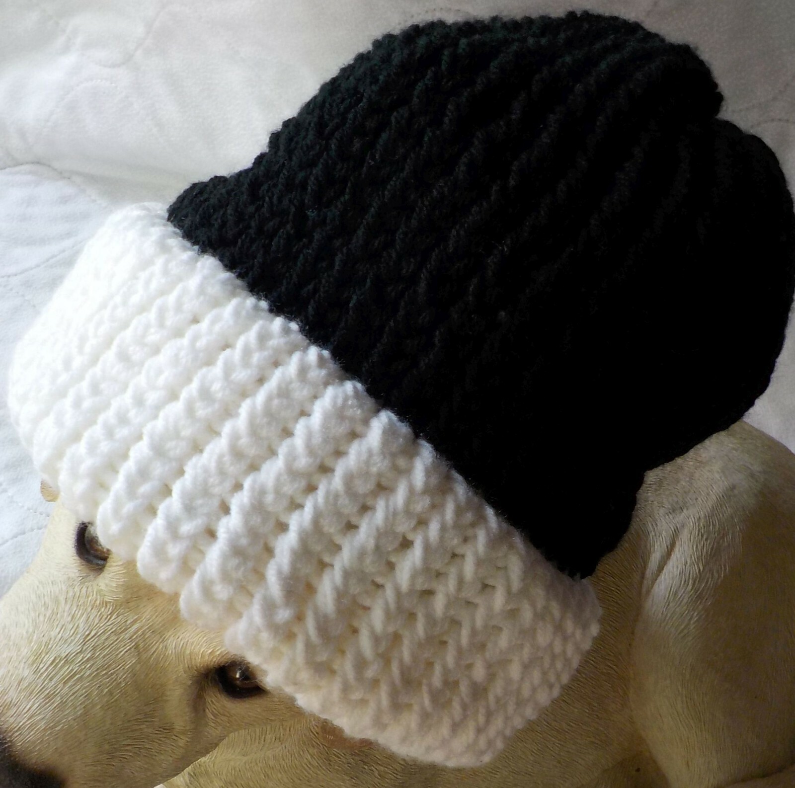 10 inch from base to top center: 20 inch around cuff of Hat, Knit is stretchy