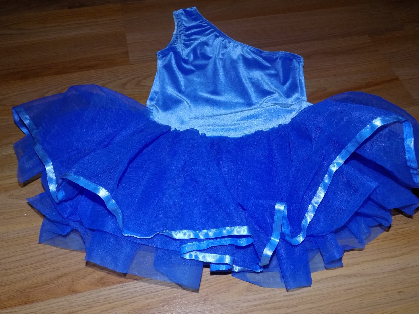 как выглядит Child Size Medium Curtain Call Blue Velour Skirted Tutu Dance Leotard Costume фото