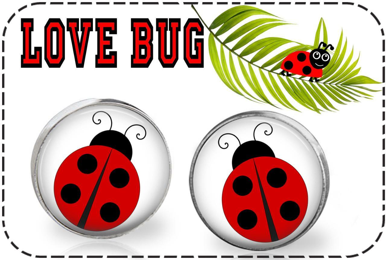 Love Bug Ladybug Girls Stud Earrings 12mm Silver Color Glass Top Girls Gift