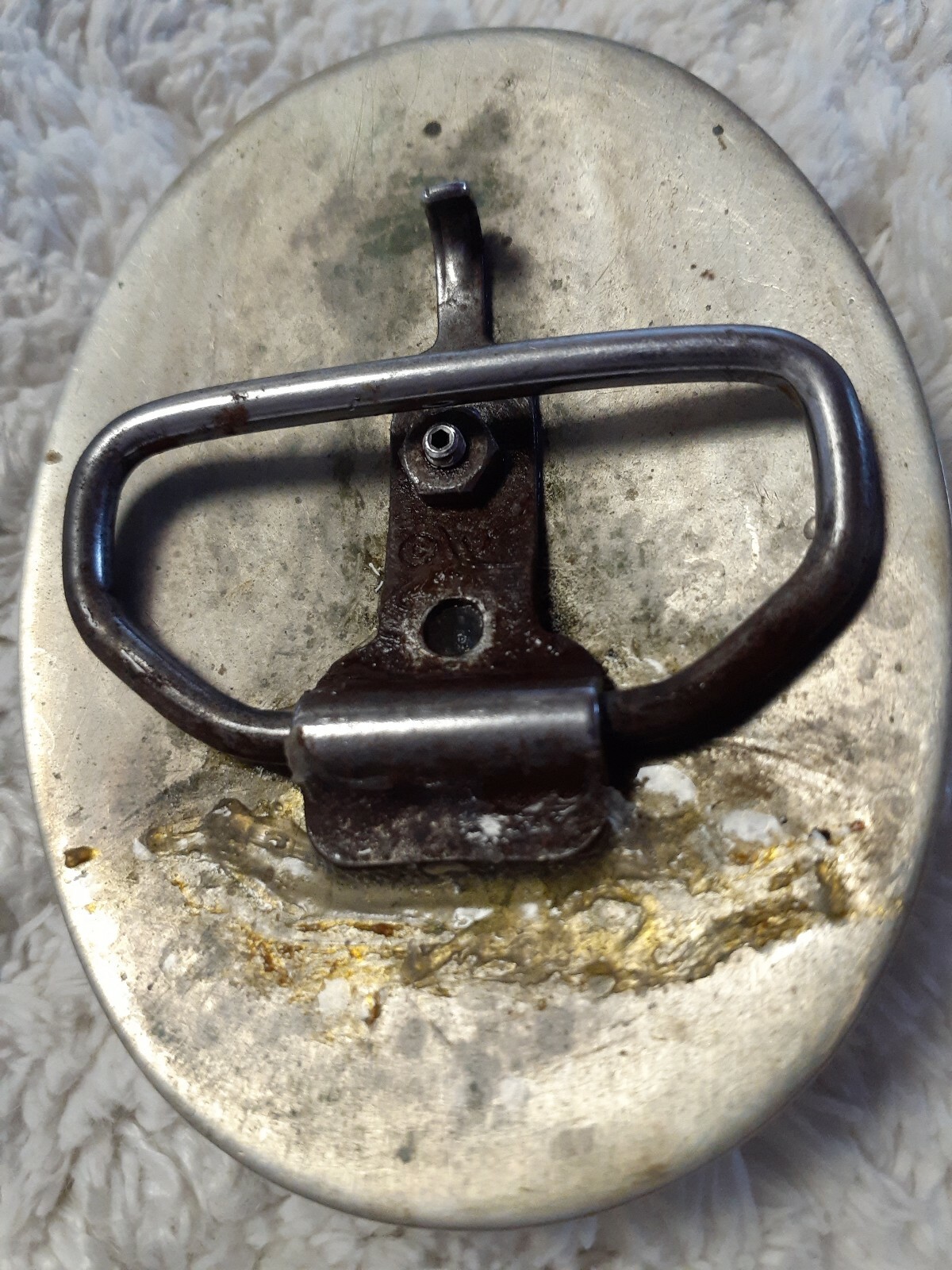 как выглядит Vtg Silver Tone Bull Head Horns Turquoise Inlay Belt Buckle Unmarked фото
