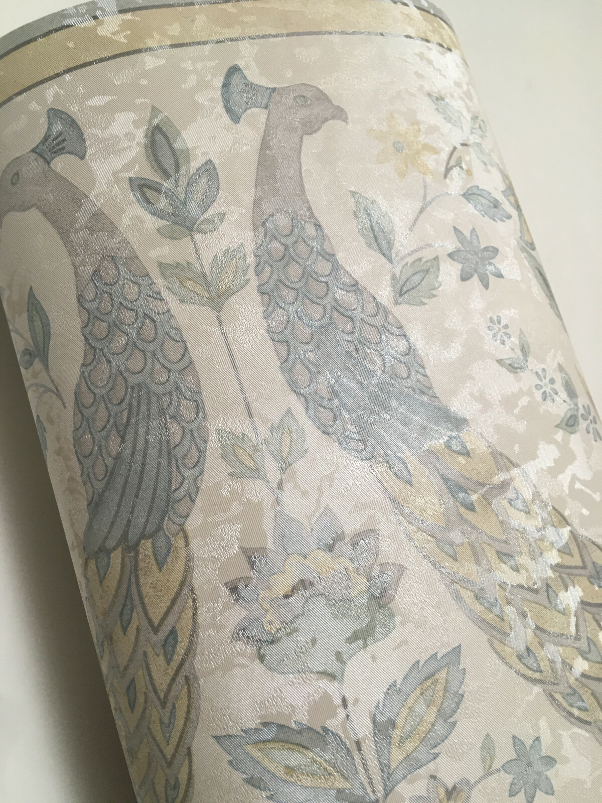 как выглядит Victorian Pastel Blue Peacock Bird Paisley Floral Silk Vinyl Wallpaper Border фото