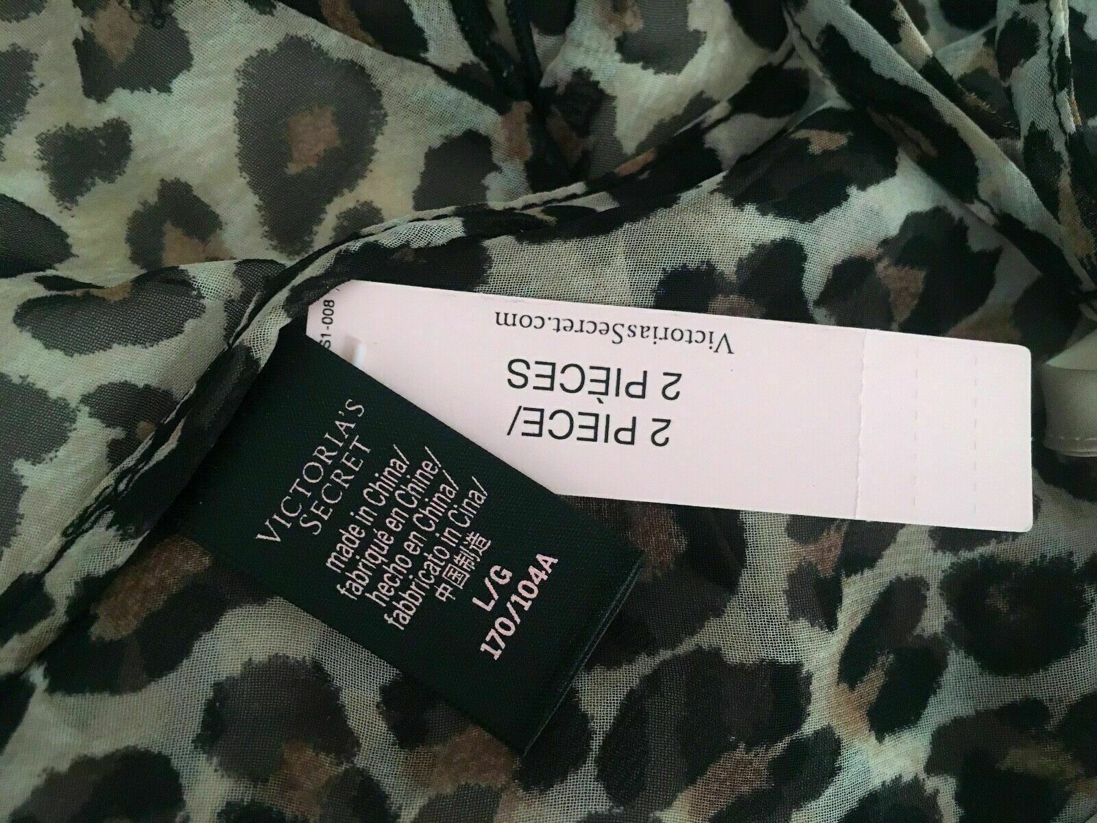 как выглядит NWT 79 VICTORIAS SECRET Leopard Print Embellished Ruffle Slip-Gown-2Pc-Large фото