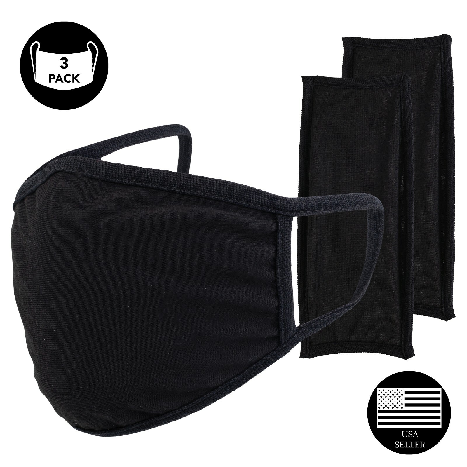 3Pcs x Double Layer Black Cotton Washable Face Mask / Reusable Adult Unisex