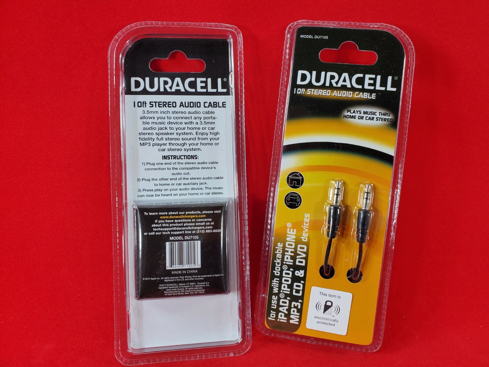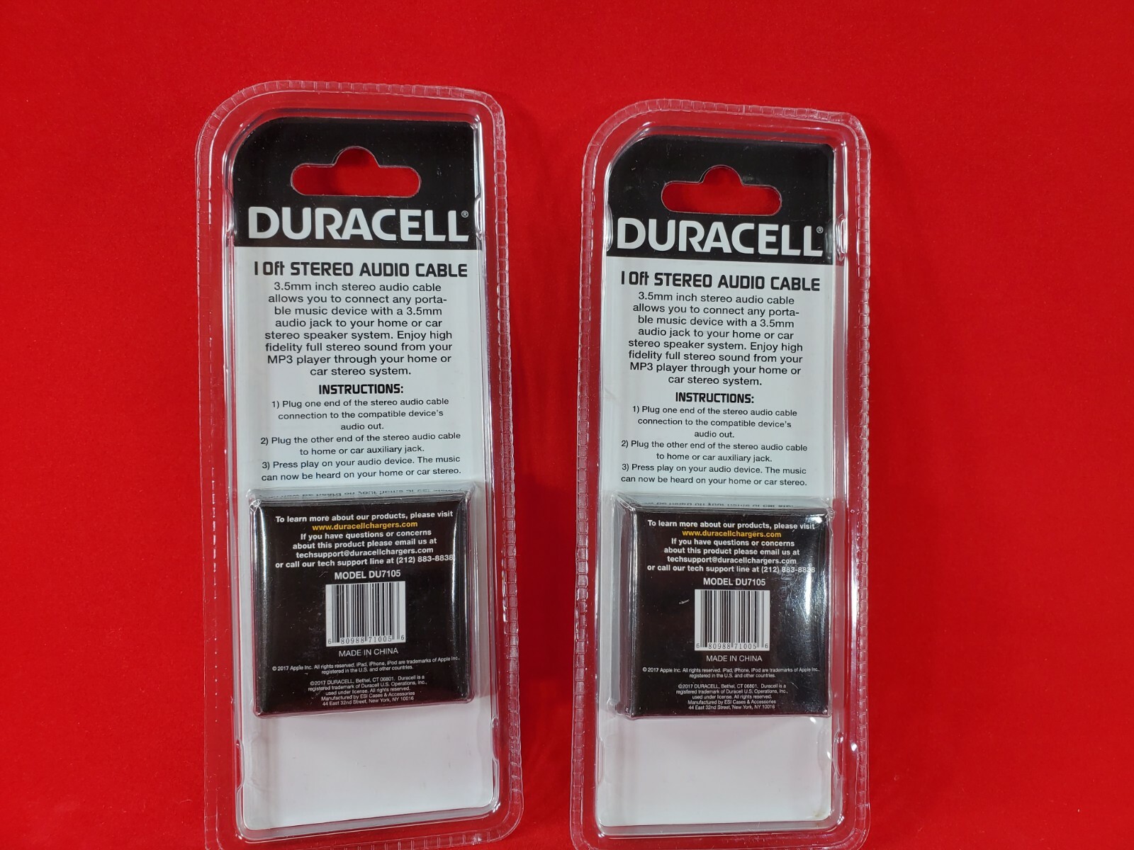 2 Pack Duracell DU7105 3.5mm Jacks Stereo Audio Cable - Black - 10 Feet Lot Of 2