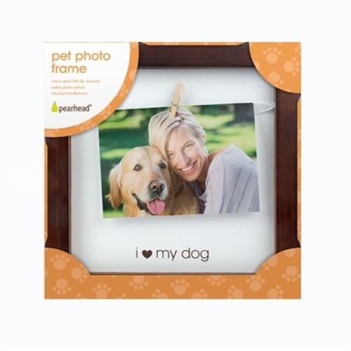 как выглядит "I Love My Dog" Pet Clothespin Shadowbox Style Picture Frame Espresso 8" x 8" фото