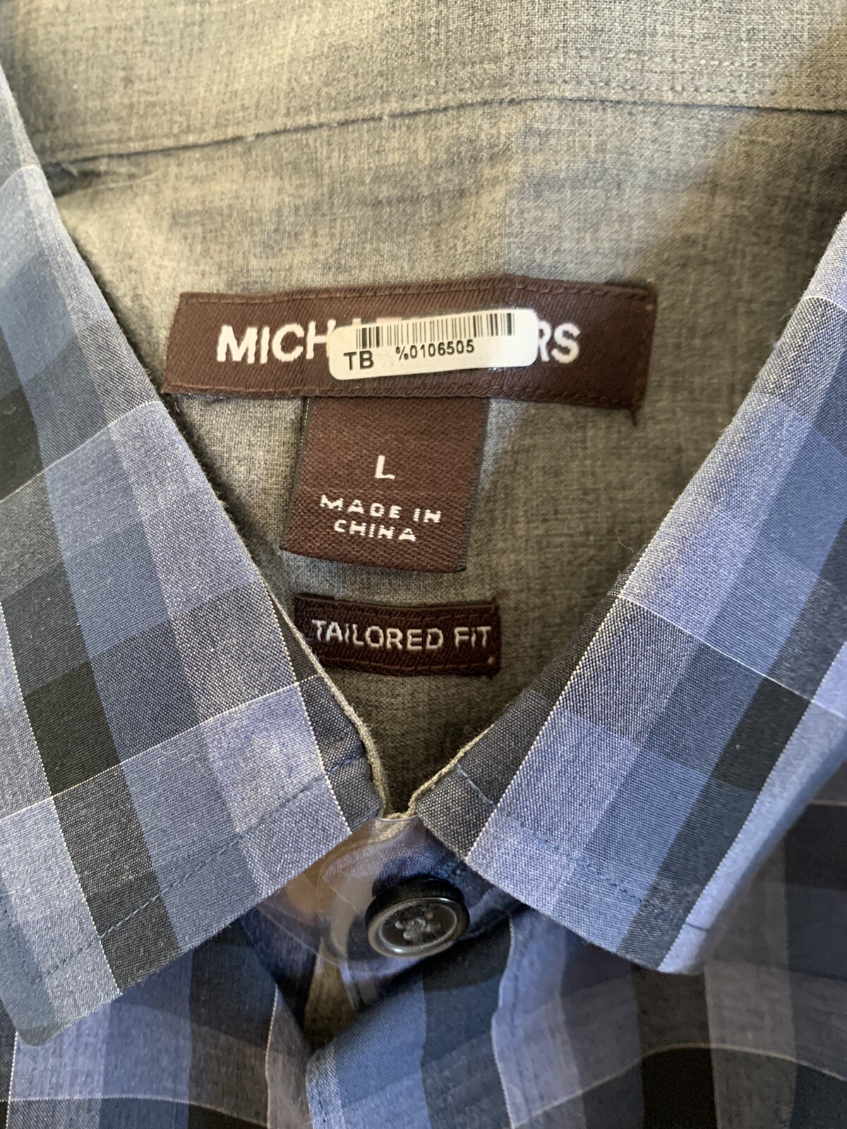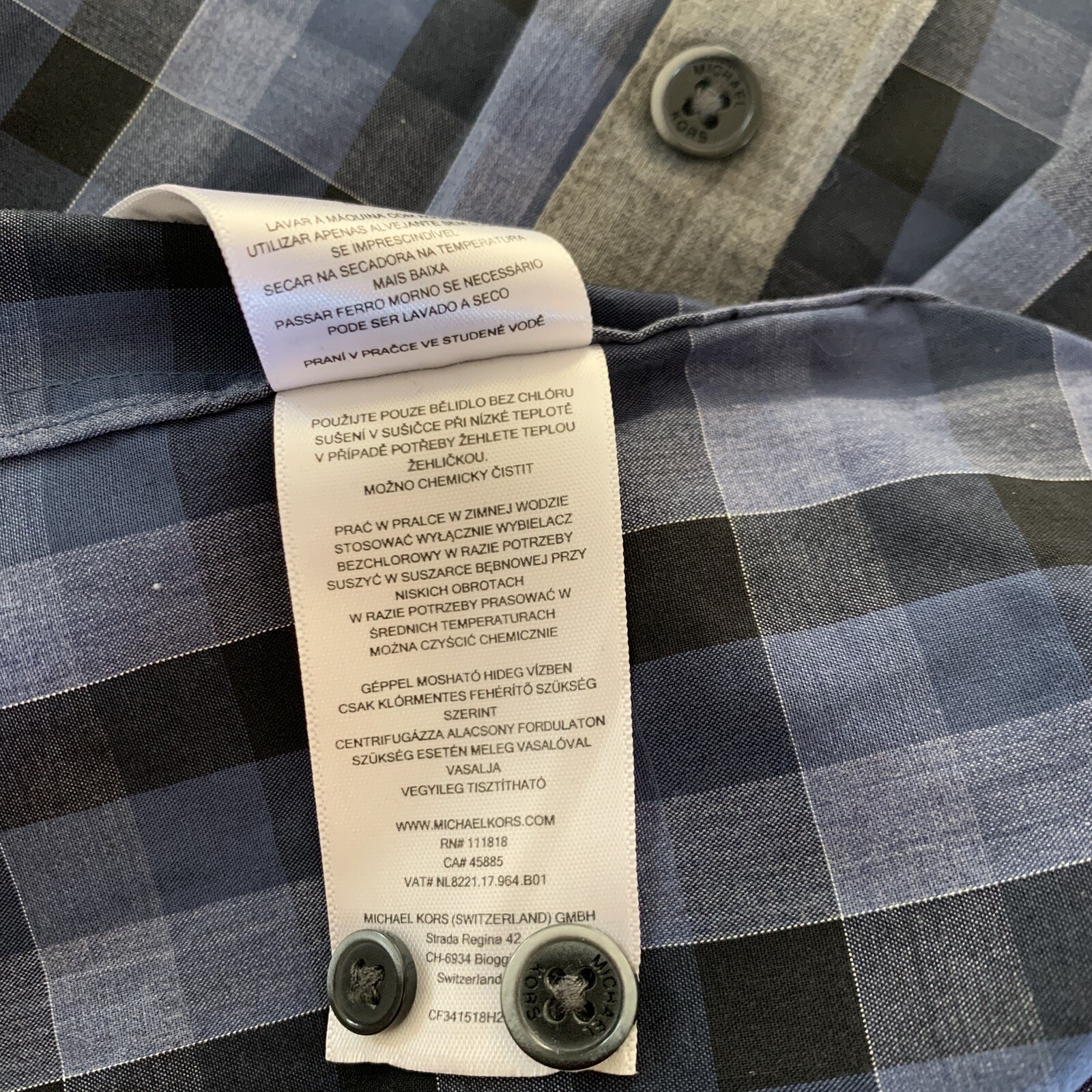 как выглядит MICHAEL KORS Mens Long Sleeve Button Front Dress Shirt L Cotton Blue Checkered фото