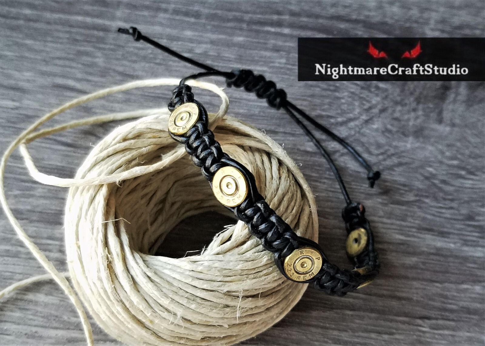 .223 Bullet Shell Bracelet with Black Leather Cord