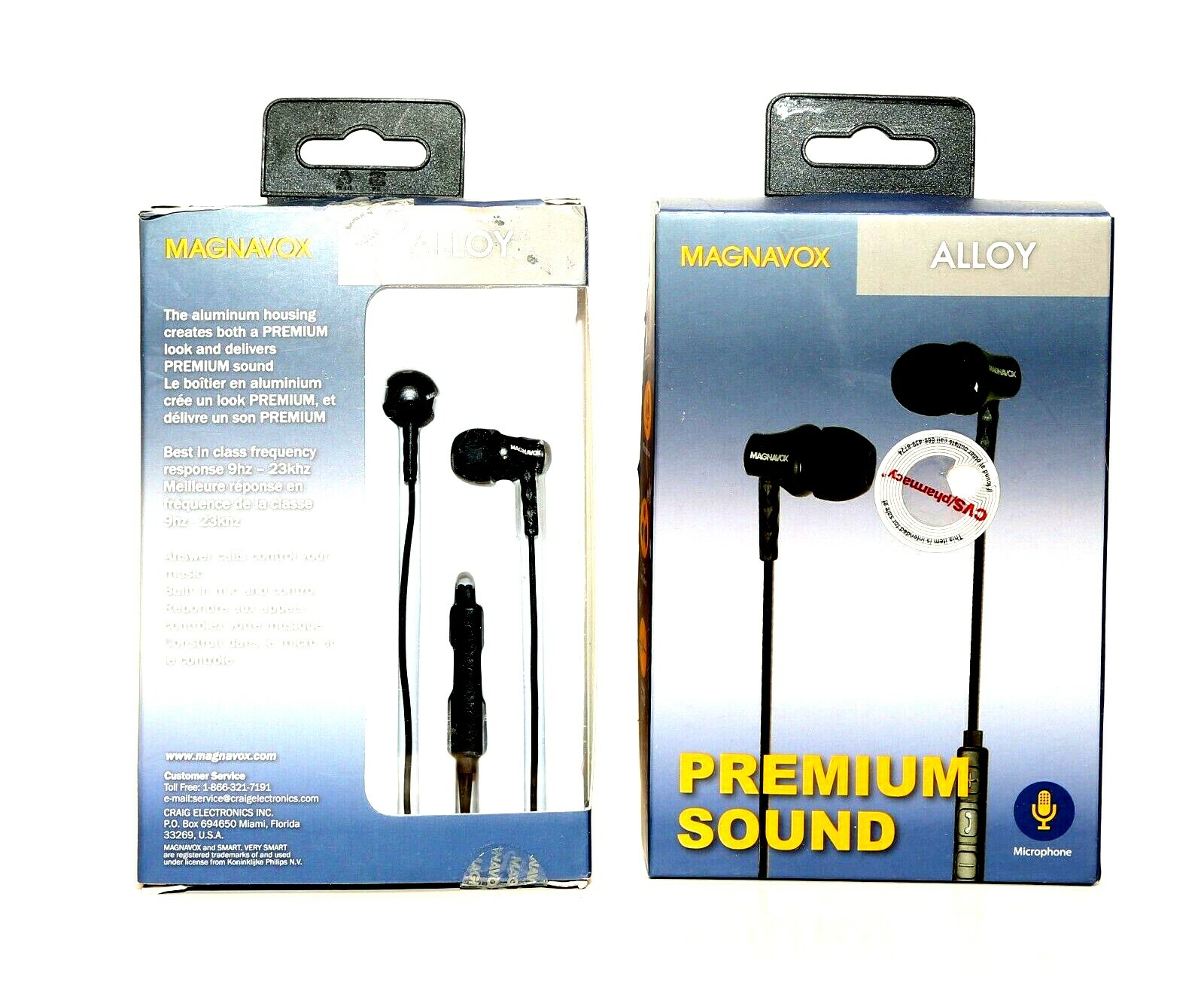 2x-Magnavox Alloy In Ear Premium Sound Wired Earphones Headphones MHP4859