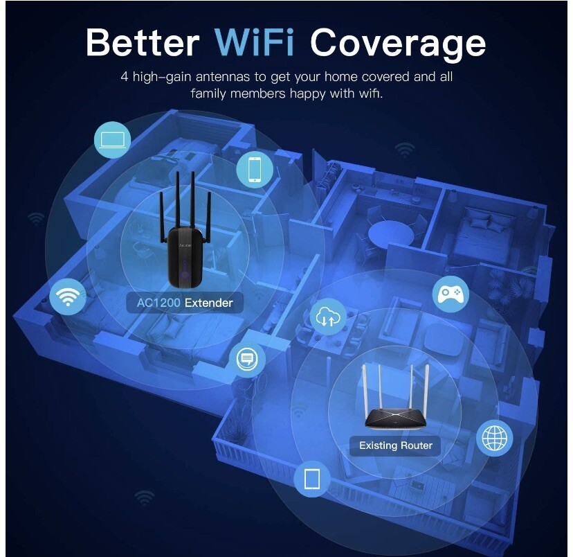 WiFi Extender/Dual Band WiFi Booster/Extender, 25 Devices, Signal Amplifier