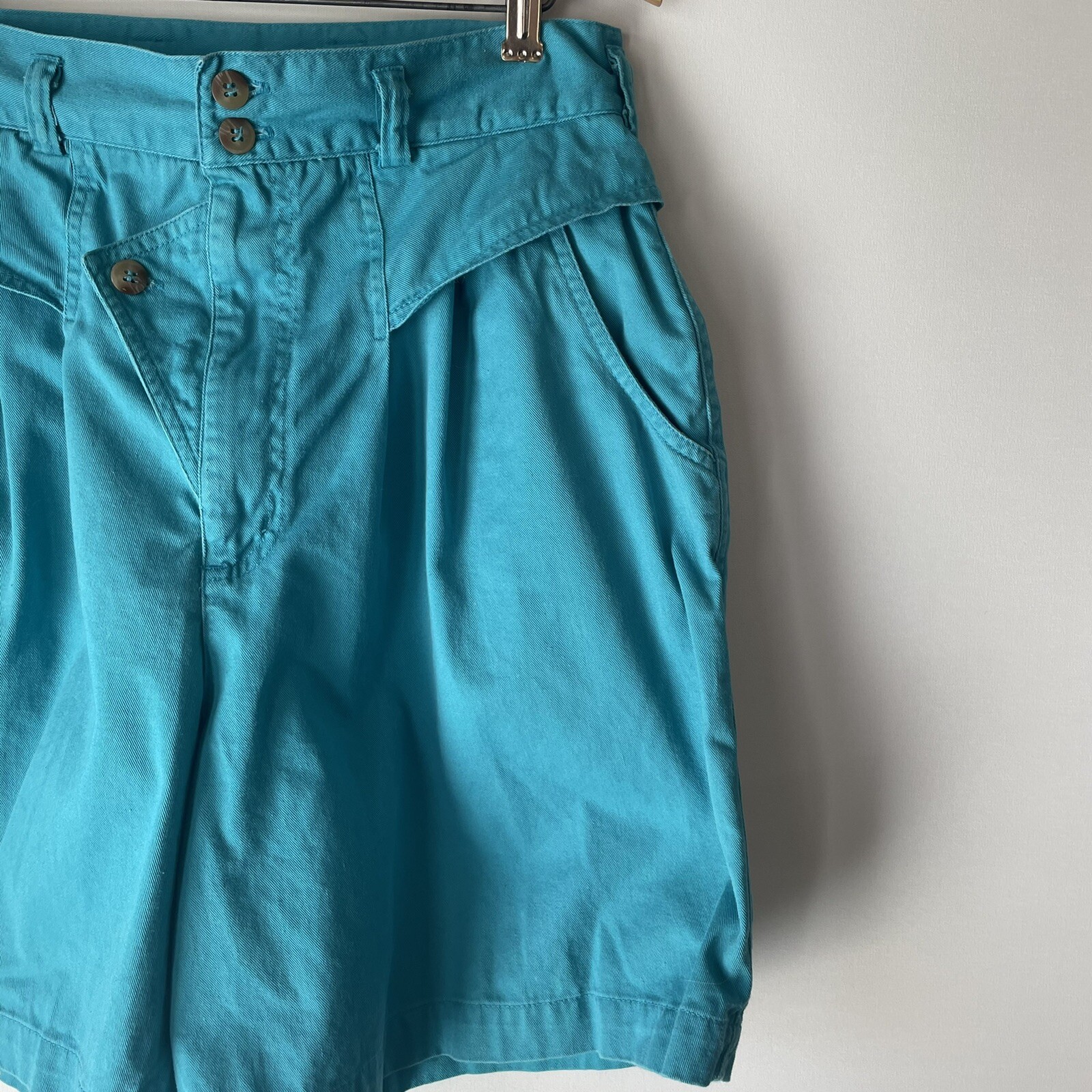как выглядит Vintage Palmettos "A State Of Mind" Teal High Rise Mom Shorts фото
