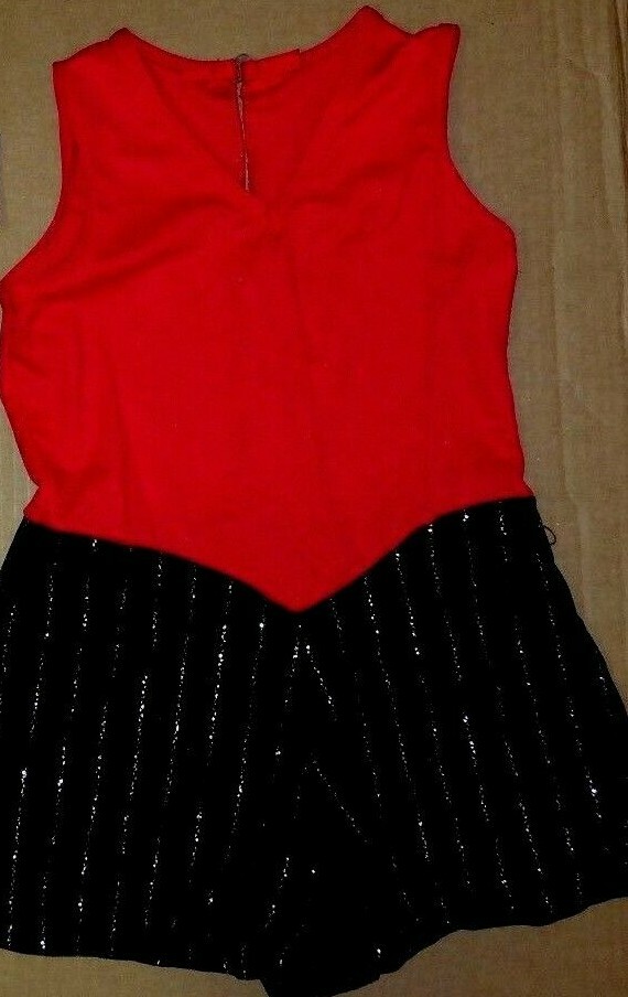 Glitter Stripe Red Black Tap Romper Dance Costume 8c hook closure