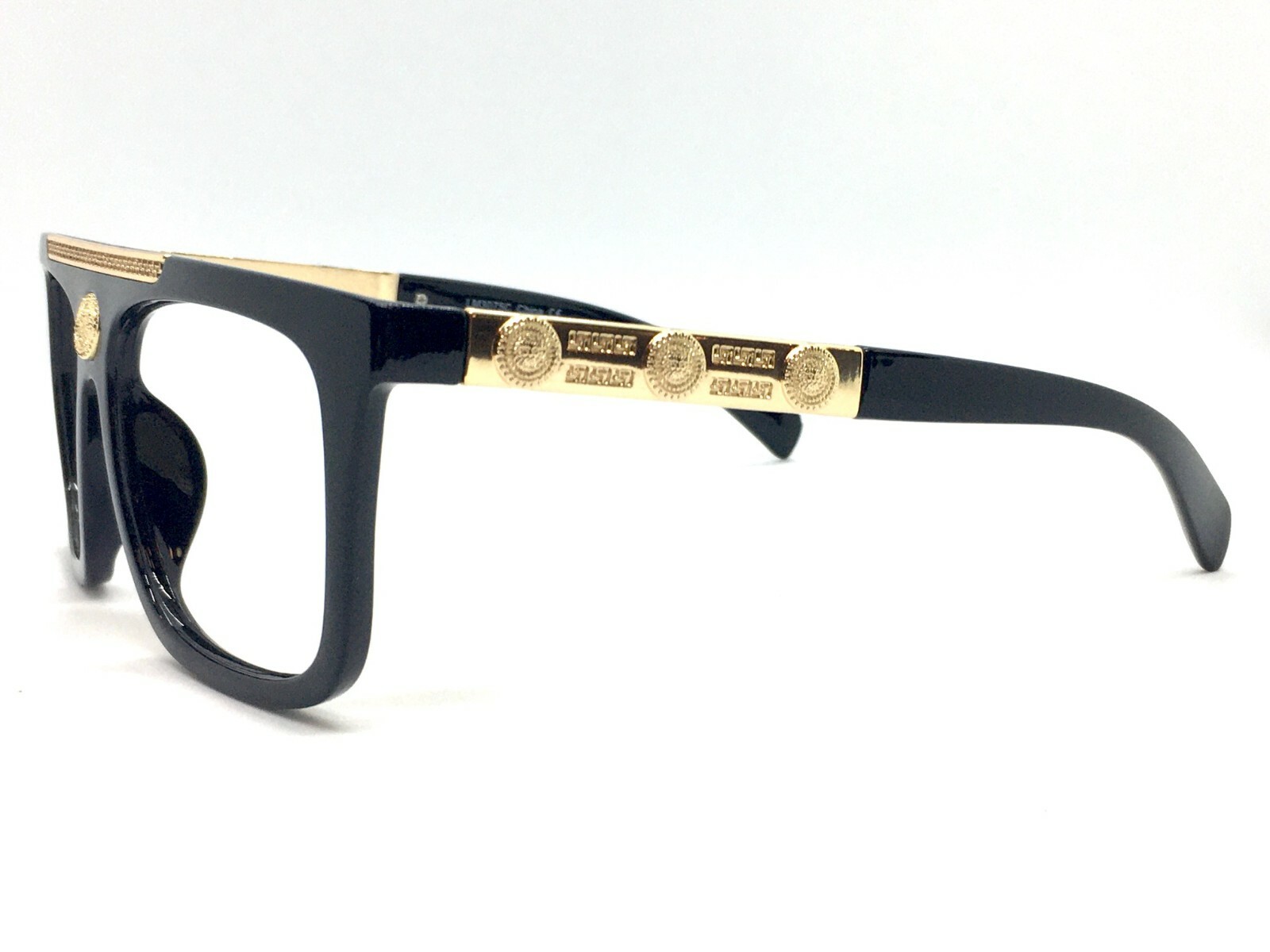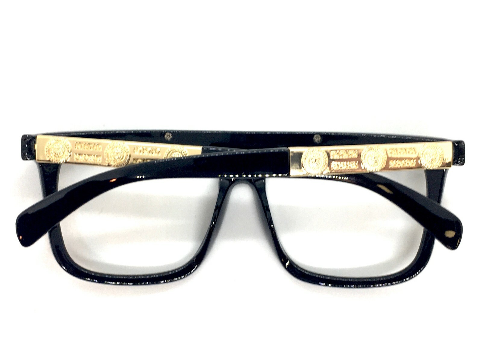 Classic Elegant Retro Hip Hop LENSLESS Eye Glasses Black Gold Frame Only No Lens