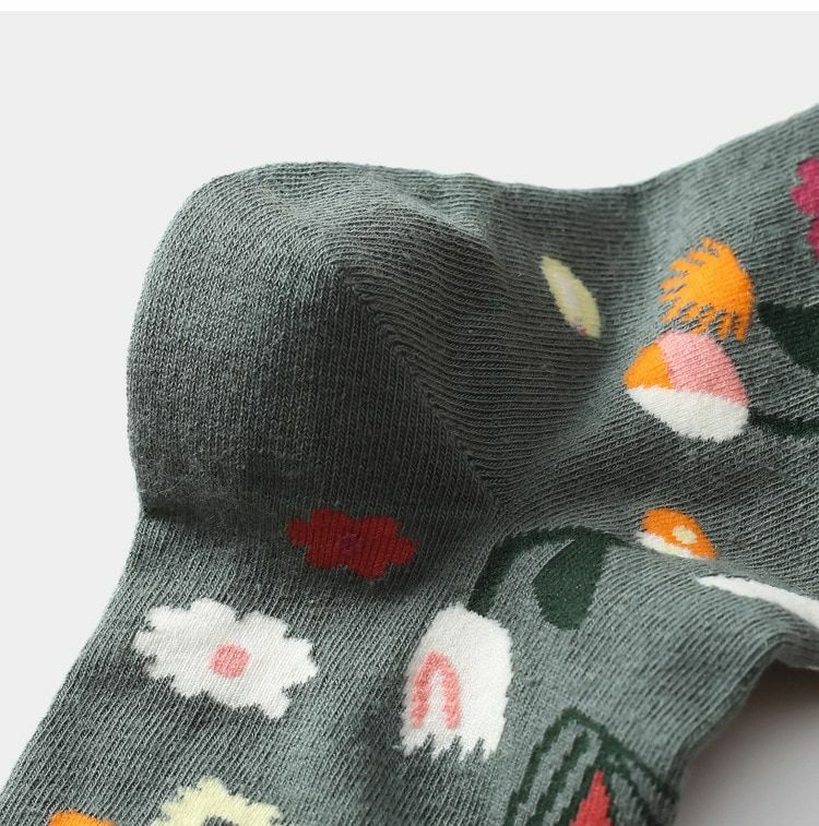 Women's Vintage Floral Print Colorful Knit Socks Hip Hop Style Fashion Footwear