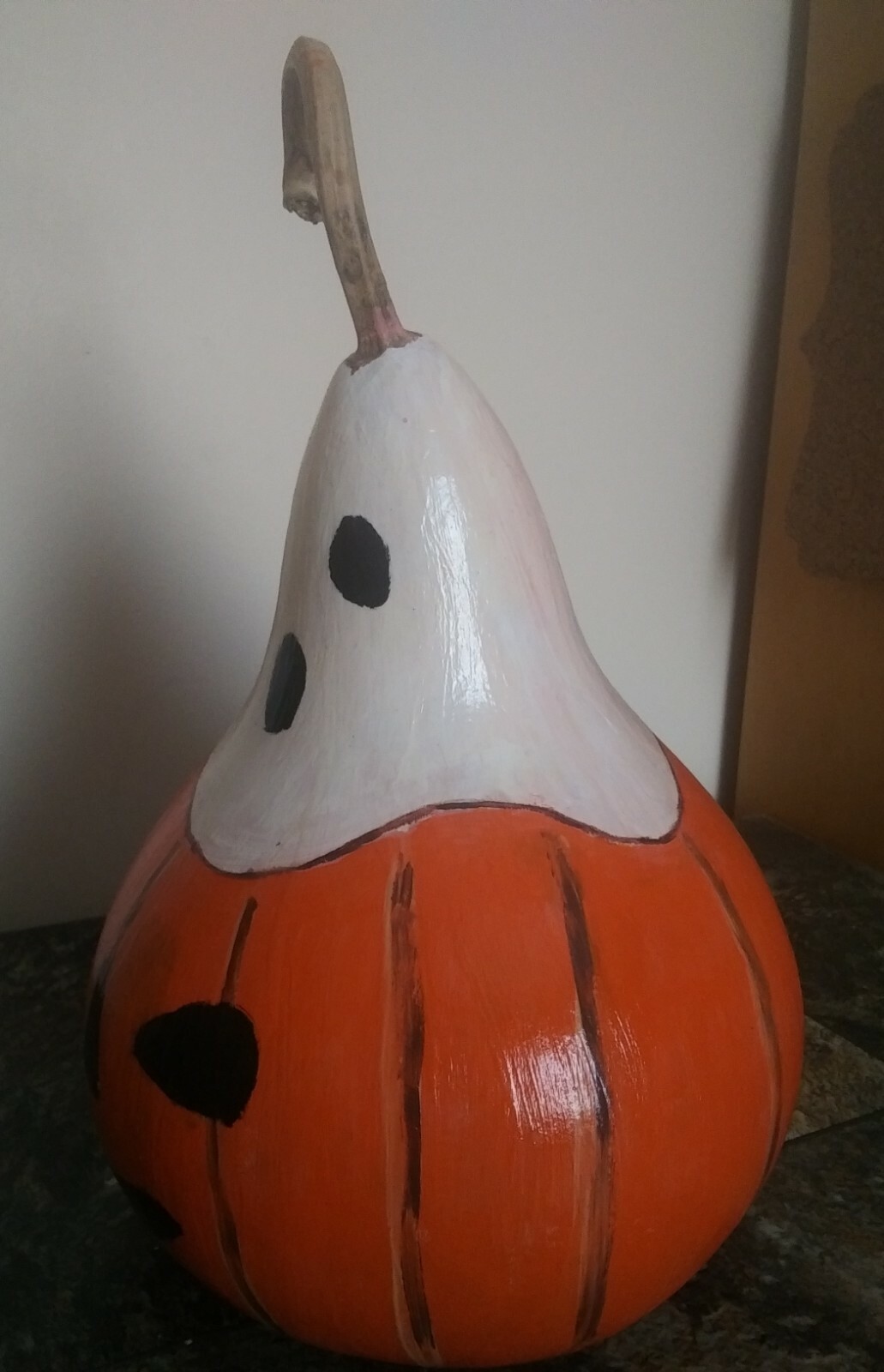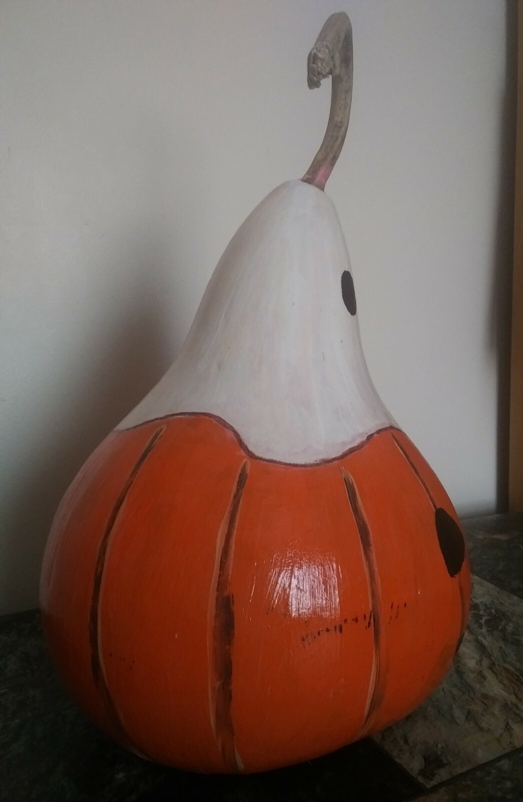 как выглядит Vintage Hand Painted Halloween Ghost Jack-O-Lantern Pumpkin Gourd 12" x 8" Decor фото