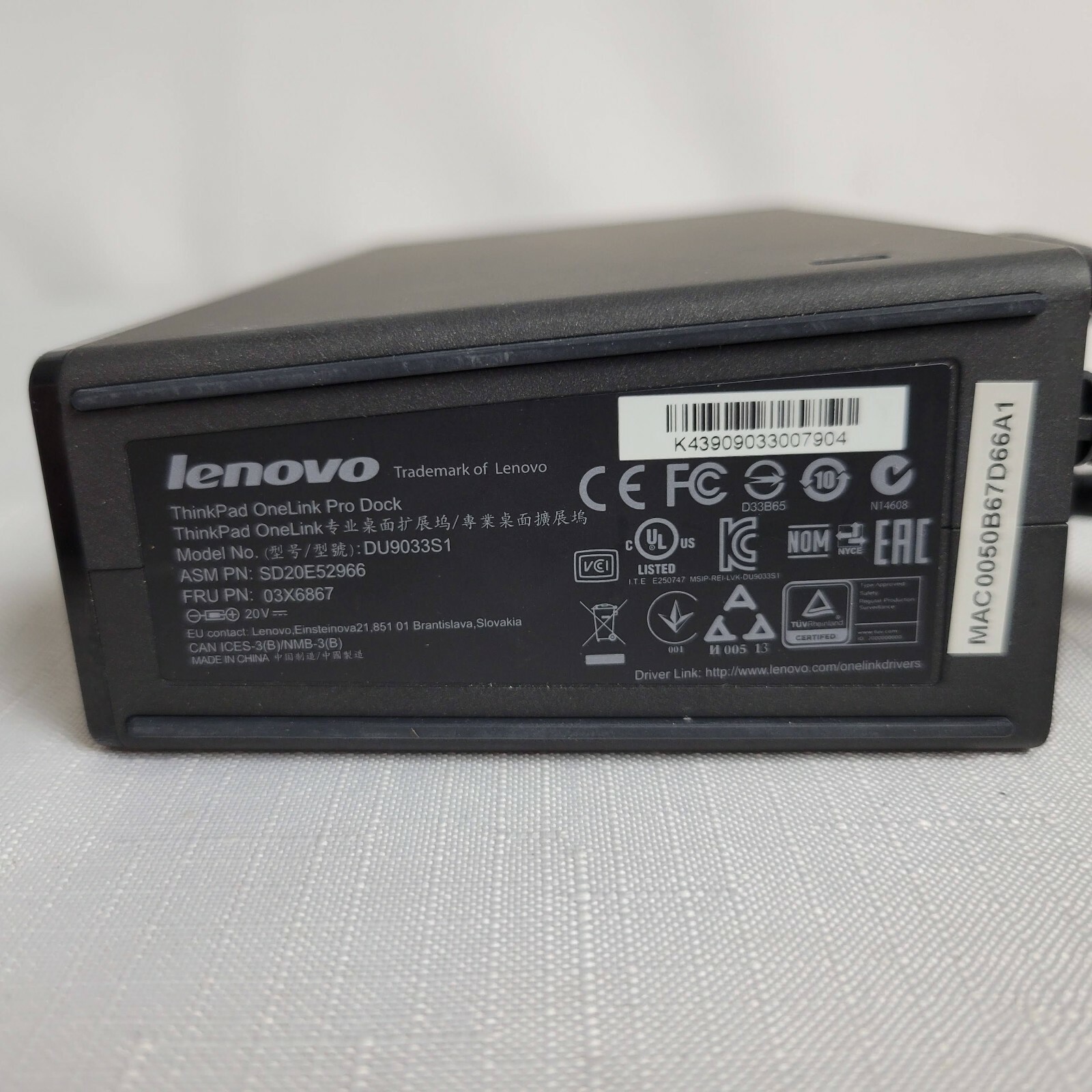 Lenovo DU9033S1 Corded ThinkPad OneLink Pro Docking Station - No Power Adaptor