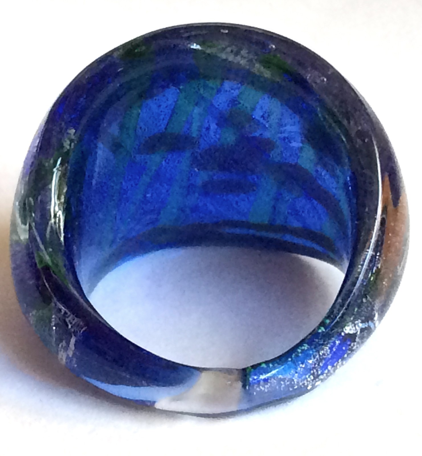 Murano Glass Cocktail Ring Size 9 Blue Green Metallic Dome USA Seller