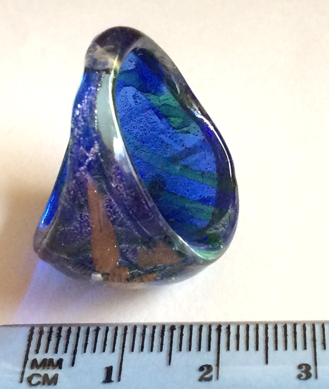 как выглядит Murano Glass Cocktail Ring Size 9 Blue Green Metallic Dome USA Seller фото