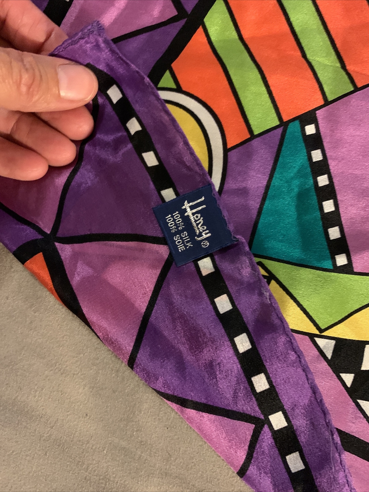 как выглядит VINTAGE SIGNED HONEY 100 ABSTRACT PURPLE RETRO PSYCHEDELIC MULTI SCARF 31 фото