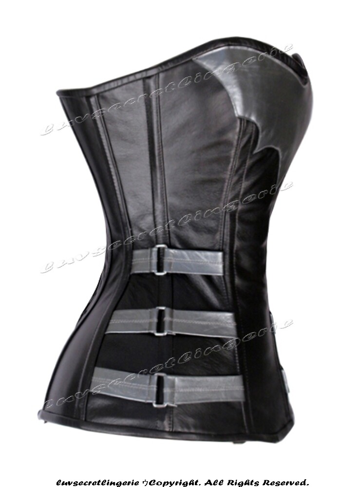 Heavy Duty 24 Double Steel Boned Waist Training Leather Overbust Corset 8566-A
